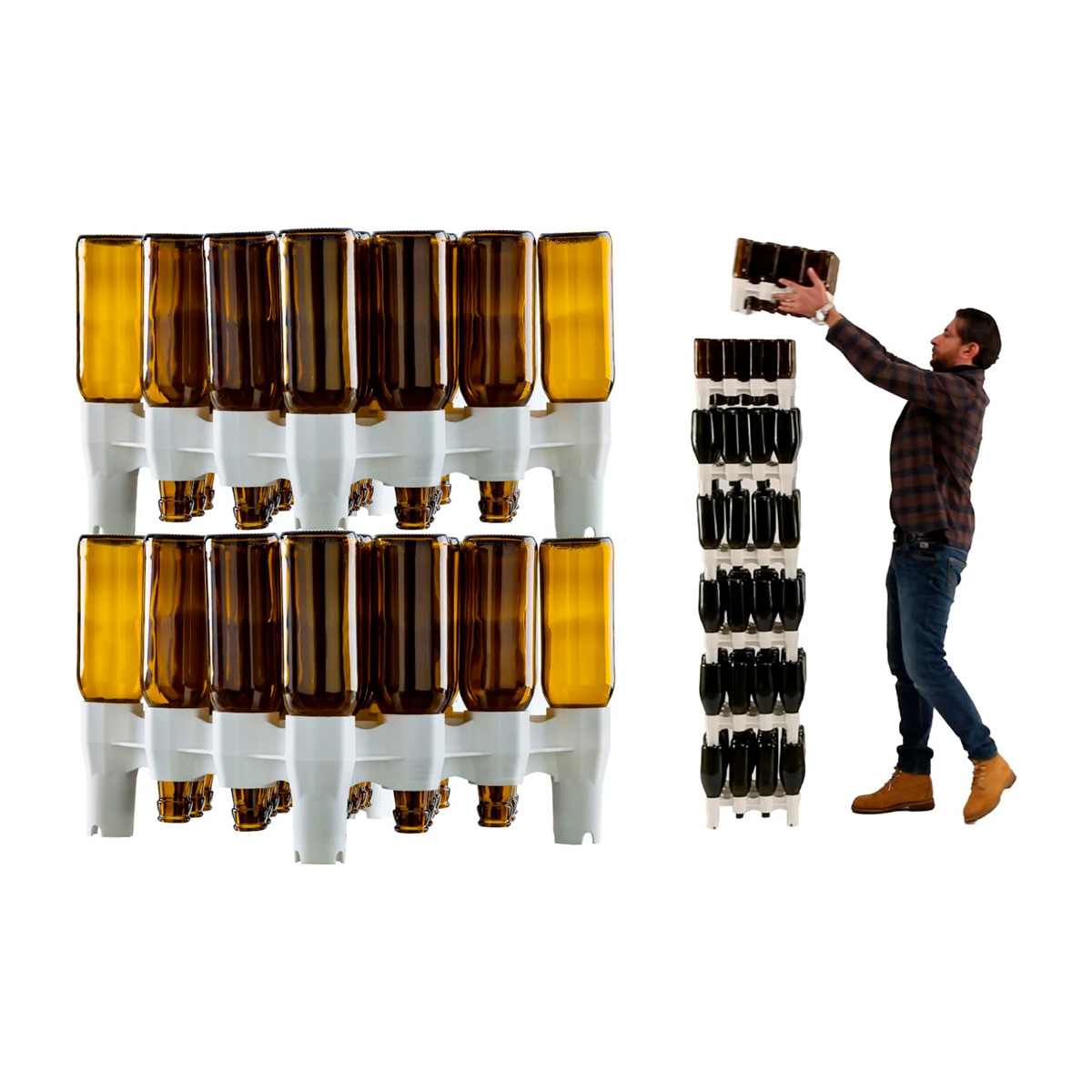 – Scola velocemente. – Sovrapponibile fi no a 7 piani. – Stoccaggio salvaspazio. – Riciclabile 100%. – Plastica alimentare. – 2 ripiani portabottiglie da 16/25 posti (32 bottiglie da vino oppure 50 da birra da 0,33 Cl).