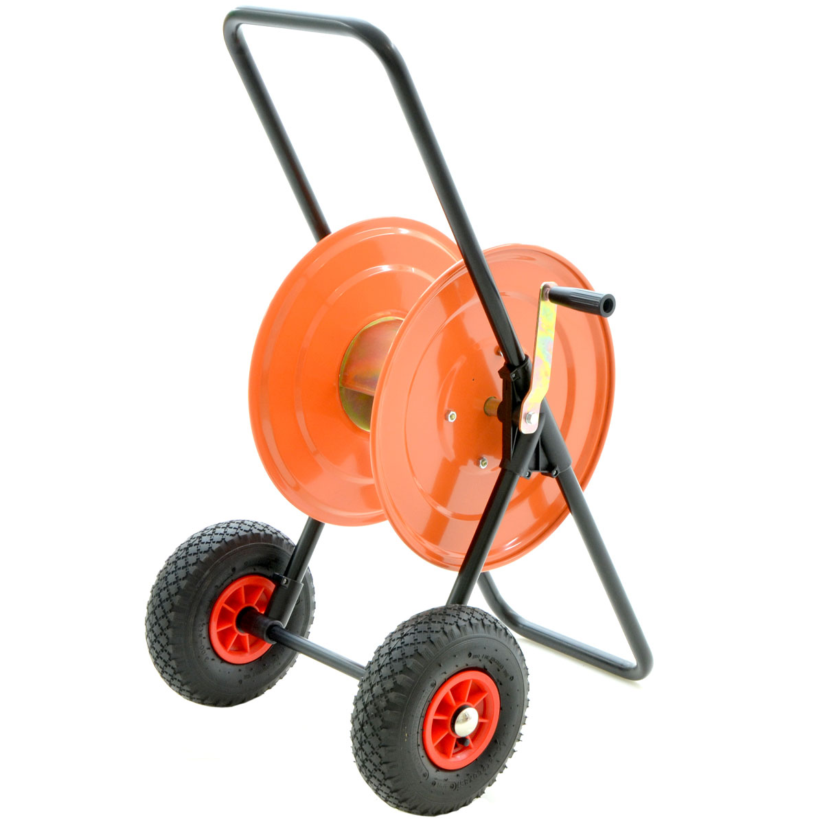 Robusto carrello in metallo. Verniciato a fuoco per una maggiore resistenza alla ruggine. Ruote pneumatiche 260×85 cm. Attacchi per tubi da interno da 1/2 e con diam. 12-15-19- 25-30 mm. Confezione da 2 pz. Montaggio rapido e semplice. ATTENZIONE: l’avvolgitubo è ideale per 150 mt. tubo irrigazione da 1/2″. Montando tubi con diametri esterni superiori, la portata di metri dell’avvolgitubo diminuirà. Dimensioni: Altezza cm 92,5.
