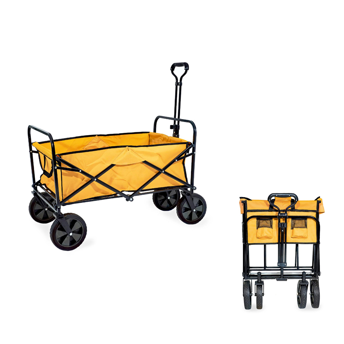 Carrello in acciaio verniciato con telo interno da giardino in poliestere 100% e maniglia in acciaio rivestita in plastica. E’ ideale per eventi sportivi, concerti all’aperto, gite al parco, in spiaggia, in giro per casa, giardinaggio, carico o scarico auto. Facile e veloce da aprire e, quando hai finito, si piega facilmente per riporlo comodamente. Il suo tessuto durevole è resistente ai raggi UV e alla muffa e si pulisce facilmente. Pieghevole e leggero. Dotato di 2 ruote girevoli in polipropilene. Portata: 70 Kg. Dimensione aperto: 92x53x65 cm. Dimenensione cassone: 85x48x30 cm. 2 ruote in Pl. fisse d. 200×40 mm. 2 ruote in Pl. girevoli d. 200x40mm. Peso: 11 Kg. Ottima soluzione per il trasporto di qualsiasi prodotto.