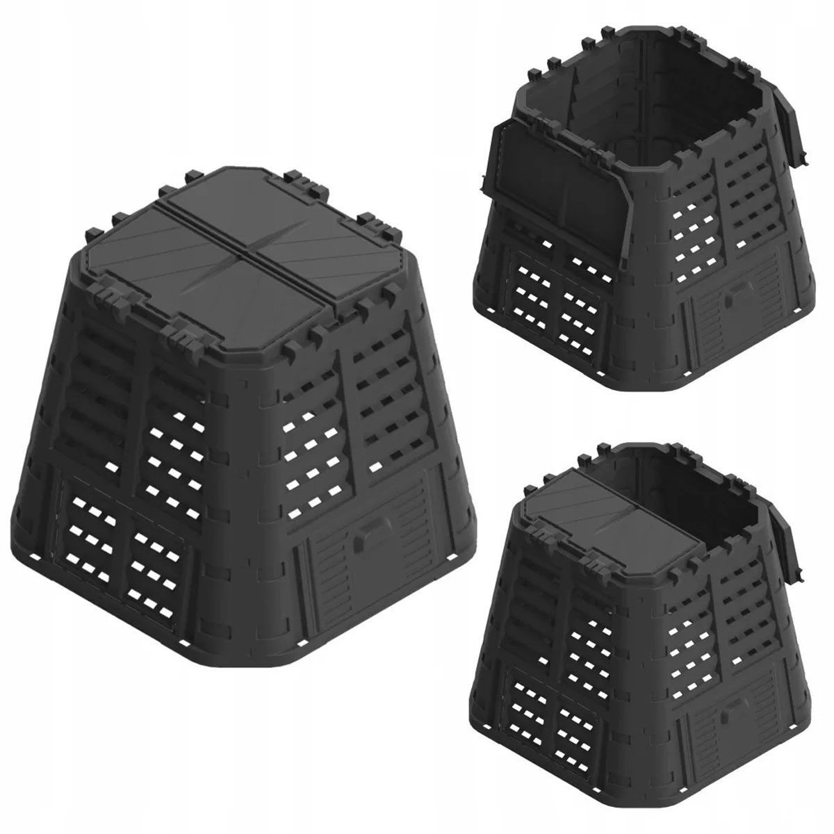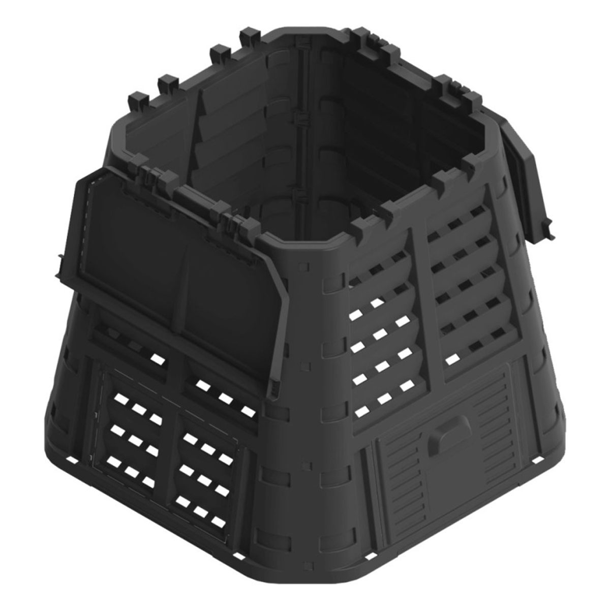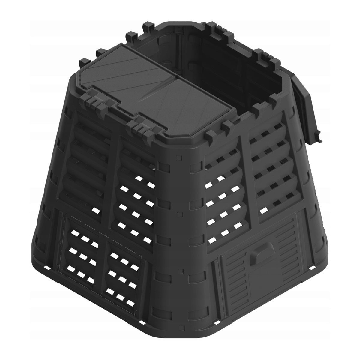 Compostiera in materiale plastico riciclabile cm. 93x93x80h, capacità 480 lt., portello di carico superiore lucchettabile, sportelli di scarico, ancoraggi per fissaggio a terra. Colore nero. Il compostaggio, sfruttando i processi naturali della composizione dei materiali organici, permette di ottenere un terriccio ricco di humus. Le caratteristiche più importanti sono: – sistema di irrigazione a goccia. – foro per lucchetto. – chiusure laterali solide. – irrigazione e aerazione. – robuste cerniere per portello. – comoda maniglia. – grandi porte scorrevoli con comodi supporti. – montaggio di ancoraggi a terra facile. – autoassemblaggio.