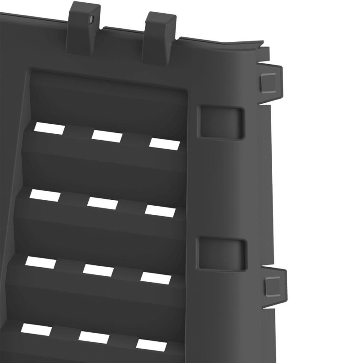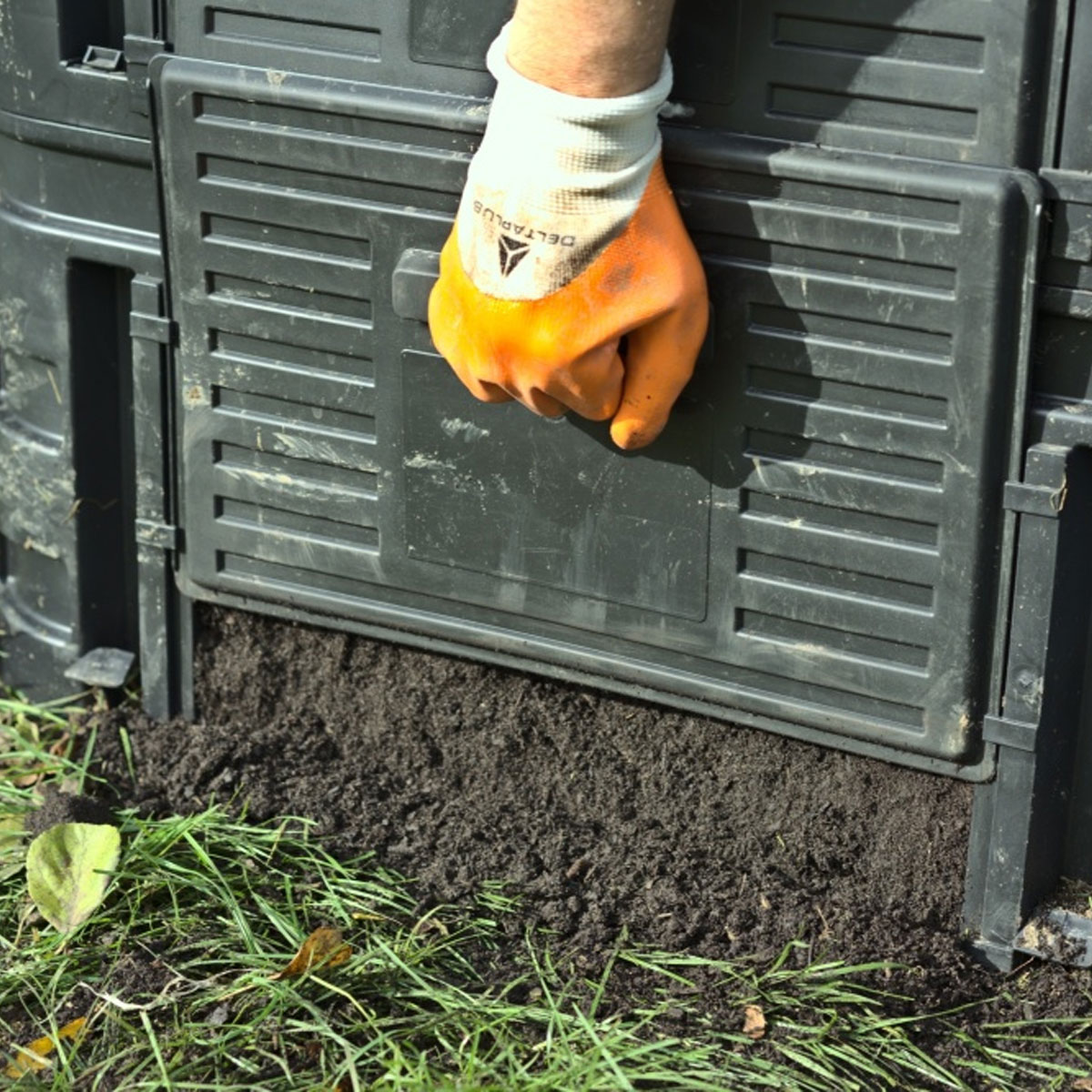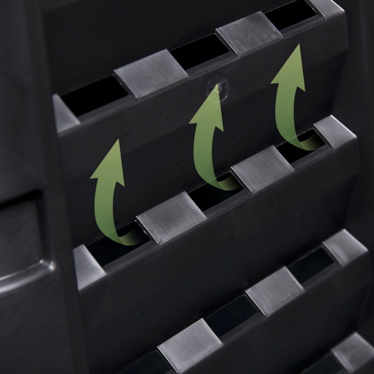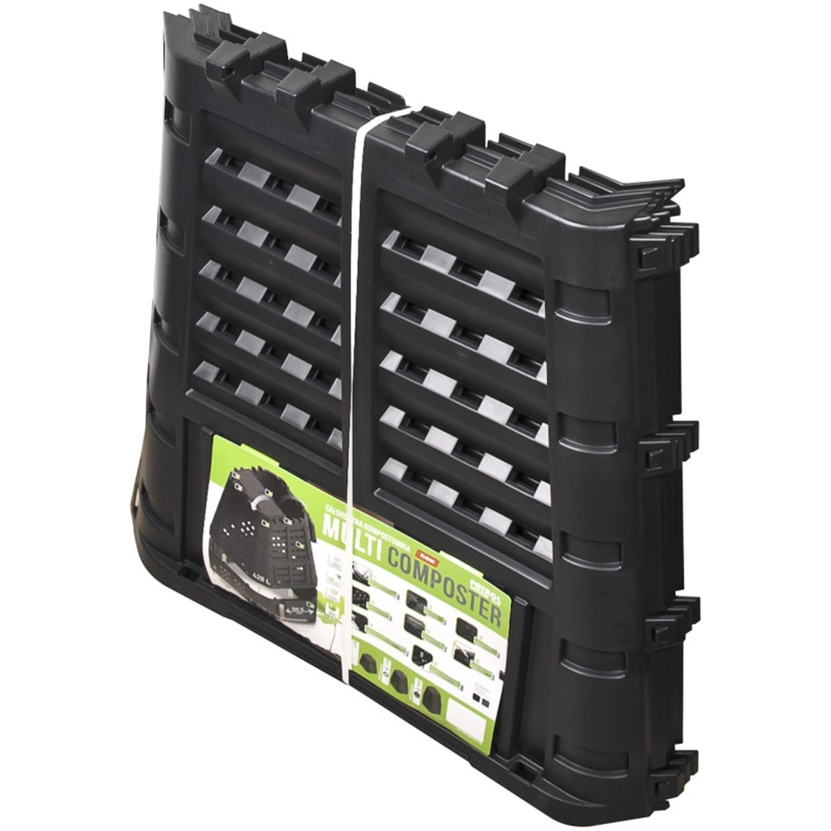Compostiera in materiale plastico riciclabile cm. 93x93x80h, capacità 480 lt., portello di carico superiore lucchettabile, sportelli di scarico, ancoraggi per fissaggio a terra. Colore nero. Il compostaggio, sfruttando i processi naturali della composizione dei materiali organici, permette di ottenere un terriccio ricco di humus. Le caratteristiche più importanti sono: – sistema di irrigazione a goccia. – foro per lucchetto. – chiusure laterali solide. – irrigazione e aerazione. – robuste cerniere per portello. – comoda maniglia. – grandi porte scorrevoli con comodi supporti. – montaggio di ancoraggi a terra facile. – autoassemblaggio.