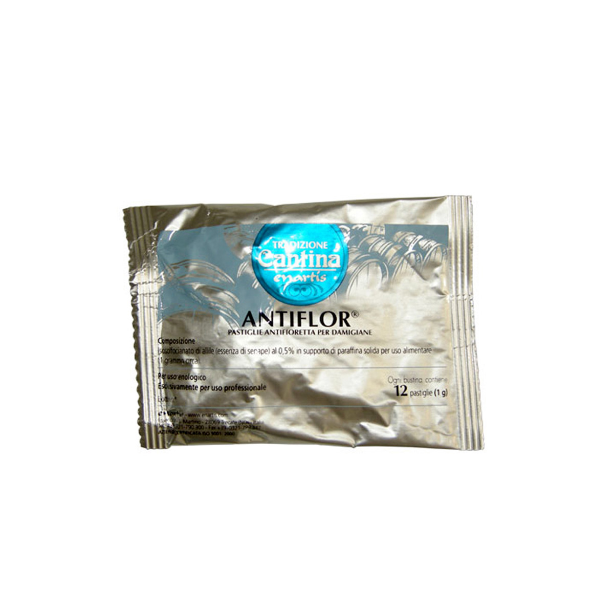 Le pastiglie antifioretta sono costituite da un supporto inerte di paraffina purissima in cui è stata solubilizzata essenzanaturale di senape,molecola d’isosolfocianato d’allile,sostanza volatile dotata dotata di altissimo potere antisettico,in particolare nei confronti dei microrganismi aerobici. I microrganismi responsabili della fioretta appartengono ai generi Pichia, Hansenula e Candida,sono lieviti a metabolismo prevalentemente ossidativo e pressochè privi di attività fermentativa.l’alternazioneè accompagnata dalla perdita della gradazione alcolica e dalla formazione d’aldeide acetica, responsabile del settore acetoso deivini affetti dalla patologia. Le pastiglie sono galleggianti a fior di liquido ed emanano lentamente il principio attivo che rende sterile l’aria sovrastante. Grazie all’azione dell’isosolfocianato d’allile il vino è protetto da altre alterazionibatteriche ed enzimatiche a carattere ossidativo che si manifestano sulla superfice dei vini la pastiglia sostituisce l’impiego dei tappi colmatori. ASPETTO FISICO: SOLIDO. COLORE: BIANCO. ODORE: SENAPE. PUNTO DI SOLIDIFICAZIONE: CIRCA 60.