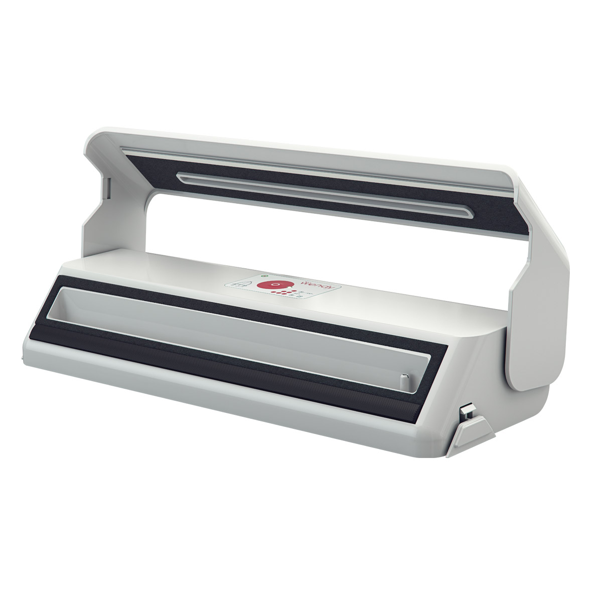 Vacuum Mobile Solution. Pratica, compatta e semplicissima da usare, Wendy permette il confezionamento degli alimenti in buste, rotoli e contenitori in vetro. Grazie all’accessorio di alimentazione con connettore accendisigari a 12V, Wendy può essere utilizzata in auto, in camper o in barca risultando molto utile e funzionale anche in viaggio. – Carrozzeria in ABS. – Tensione e Frequenza: 110-240 V / 50-60 Hz. – Pannello di comando digitale con LED luminoso e un tasto a 3 impulsi: ciclo automatico completo per buste e rotoli. ciclo saldatura per buste e rotoli. ciclo aspirazione per barattoli. – Apertura / chiusura dello sportello facilitata da tasti laterali a pressione manuale. – Camera del vuoto con taglio di sicurezza a 45° che diminuisce il rischio di aspirazione dei liquidi. – Assorbimento elettrico estremamente limitato. – Peso: 1,2. – Ingombro: 36,5X13,8X6,5 CM. – Lunghezza barra saldante: 33 CM. – Potenza assorbita: 42 w. – Depressione massima: 700mbar. – Portata pompa del vuoto: 12 l/min.