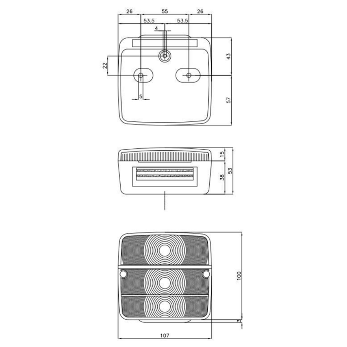 Fanale posteriore alogeno dx 108x53x107mm, interasse di foratura 55 mm. Funzioni: indicatore di direzione, luce stop, luce di posizione. Lampadine non incluse. Omologato per circolazione stradale. Caratteristiche prodotto: – Tipo luce: Alogeno. – Fissaggio: Viti. – Collegamento elettrico: passacavo in gomma Ø 4 mm per cavo elettrico. – Corpo faro: PP. – Interasse fori: 55. – Lato: destro. – Materiale lente: PMMA. – Omologazioni: ECE. – Tipo lampadina: P21W non incluse.