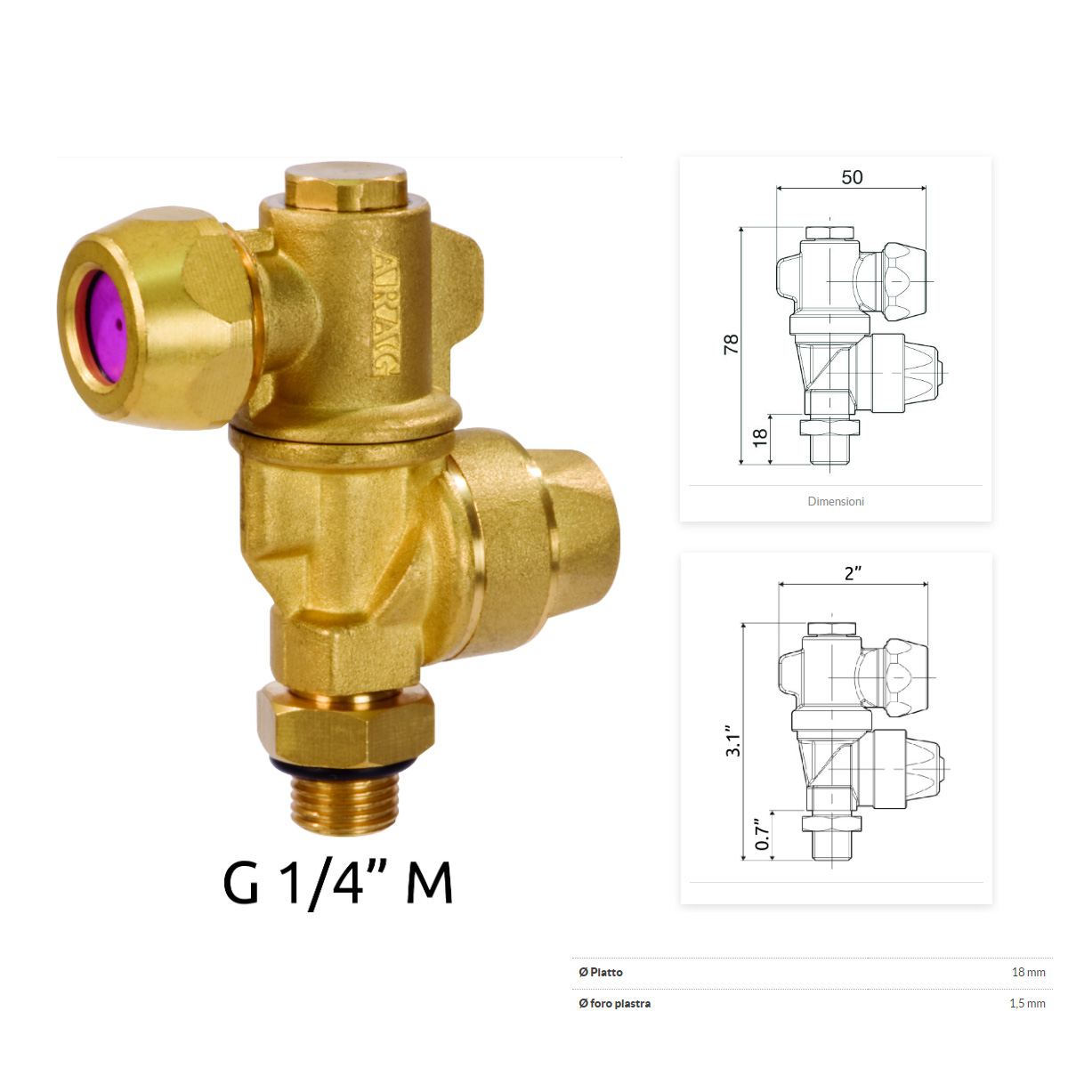 GETTO PROFESSIONALE – MADE IN ITALY.Getto singolo completo di filtro, convogliatore, guarnizione e piastrina. Piastrina diametro 18 mm – foro 1,5 mm. – Foro convogliatore 1,5 mm Attacco filettato G 1/4 M
