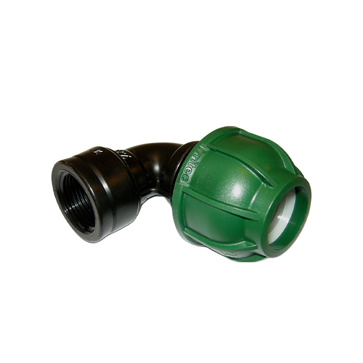Raccordo a compressione a gomito con derivazione femmina 40×3/4”. Pressione massima di esercizio 10 bar.