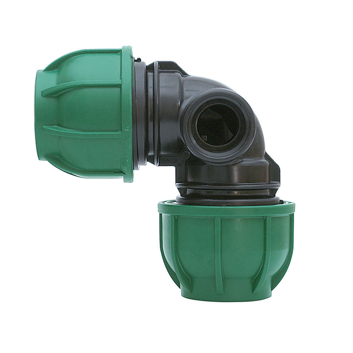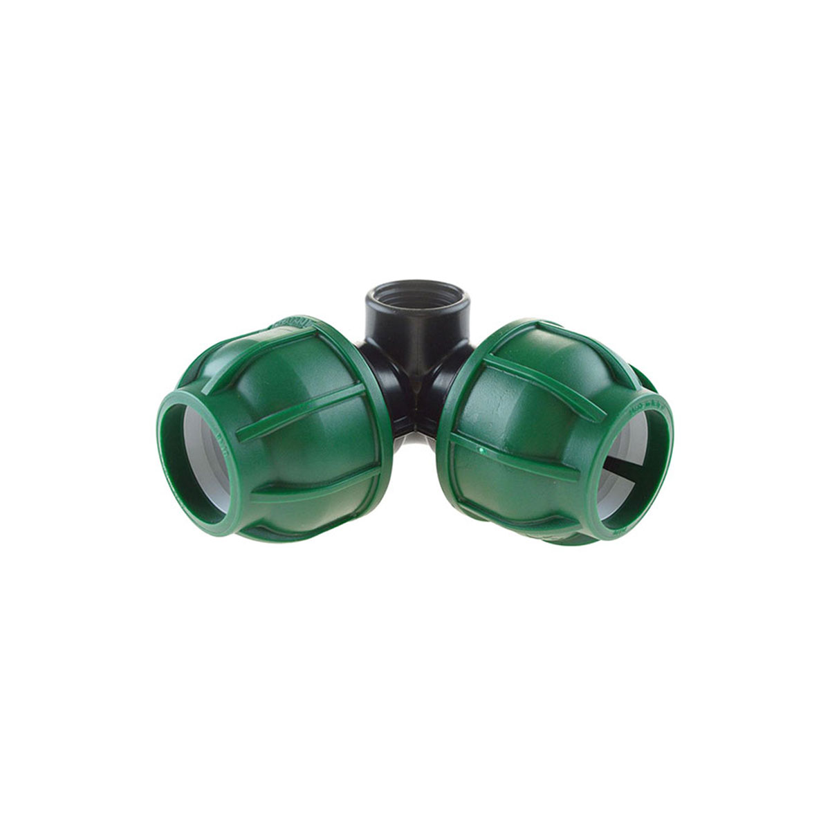 Raccordo a compressione angolare a T per POP-UP 25x25x1/2”. Pressione massima di esercizio 10 bar.