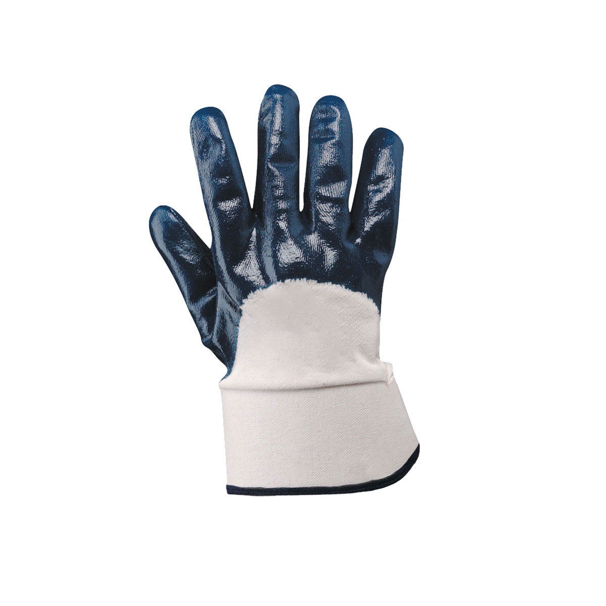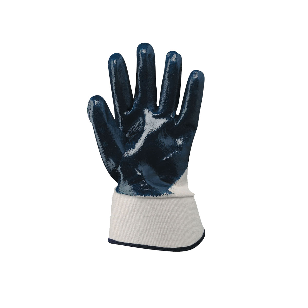 Guanti in tessuto jersey di cotone impregnato in NBR. Colore: blu, bianco. Palmo, dita e nocche sono ricoperte. Forniscono un’ottima resistenza all’abrasione, idrocarburi e derivati, oli e grassi. Manichetta di sicurezza in tela di cotone. Dispositivo di Protezione Individuale (DPI) di seconda categoria di rischio. Guanti di protezione contro rischi meccanici.