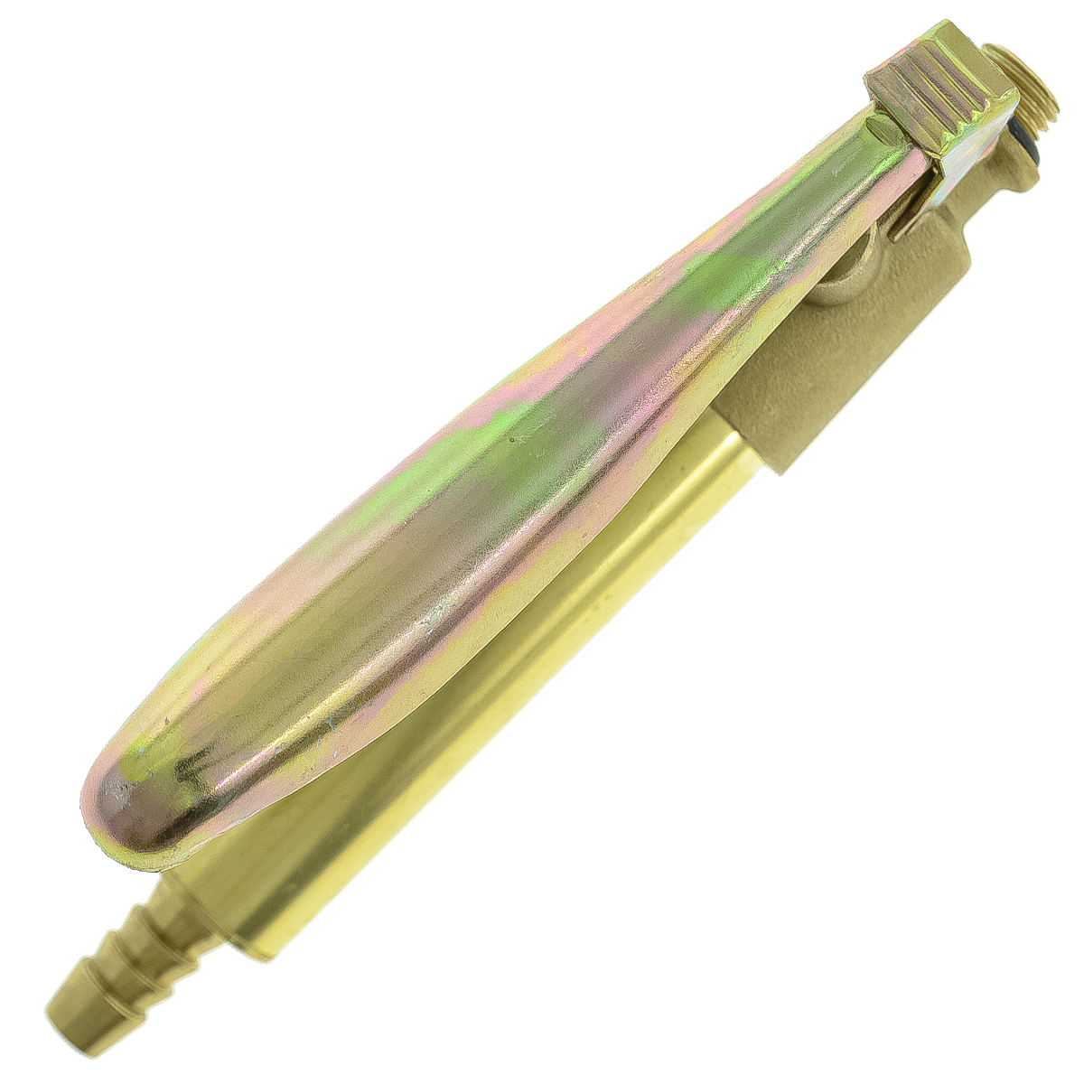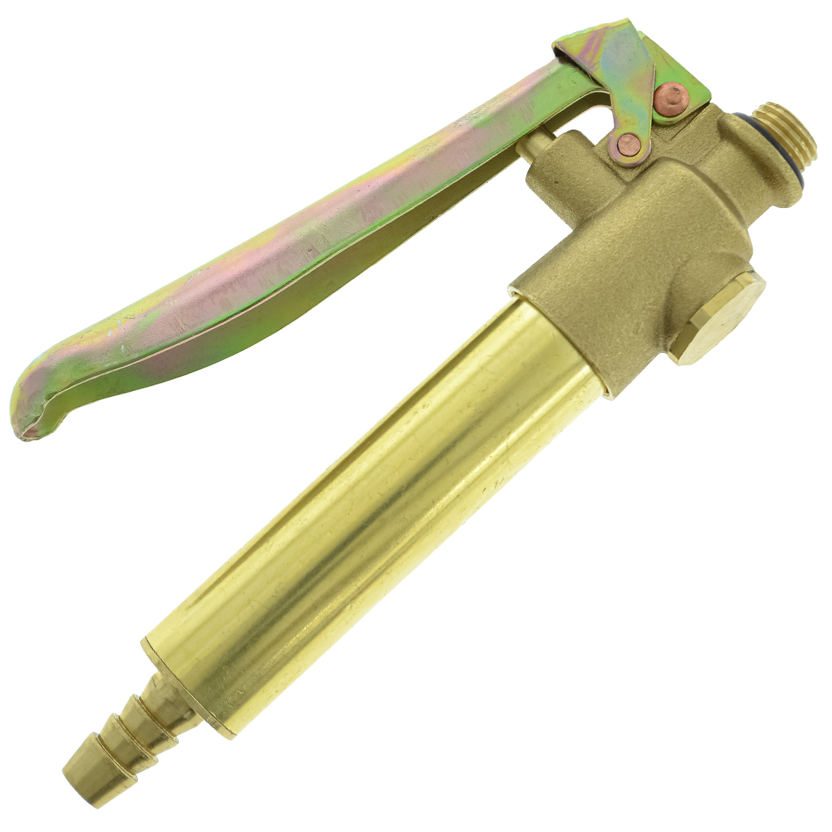 Rubinetto a leva in ottone con fermo dotato di retina interna per lancia pompa a spalla, filettatura diametro circa 10 mm e portagomma diametro 6-9 mm. Ricambio compatibile per lancia pompa 3000020 – 3000040.
