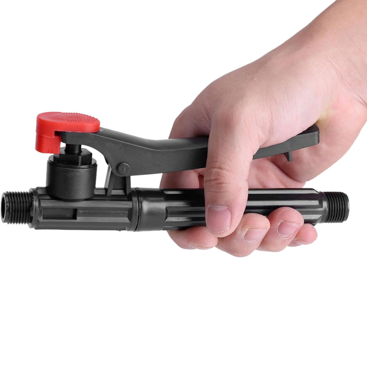 L’impugnatura in plastica con fermo per lancia irroratrice BURG è realizzata con materiali resistente agli urti e alle intemperie, garantendo un lungo ciclo di vita. Perfetta per un uso quotidiano intenso nel giardino o in ambito agricolo. L’impugnatura a grilletto è dotata di un’interruttore a presione unico che permette di attivare o disattivare lo spruzzo con un semplice tocco della mano. Ottima ergonomia per un controllo immediato e rilassato. L’impugnatura offre un controllo preciso del flusso d’acqua, regolando facilmente la pressione e l’andamento del getto. Con dimensioni compatte (lunghezza 19 cm) e peso ridotto (circa 62 g), questa impugnatura è facile da trasportare e installare.