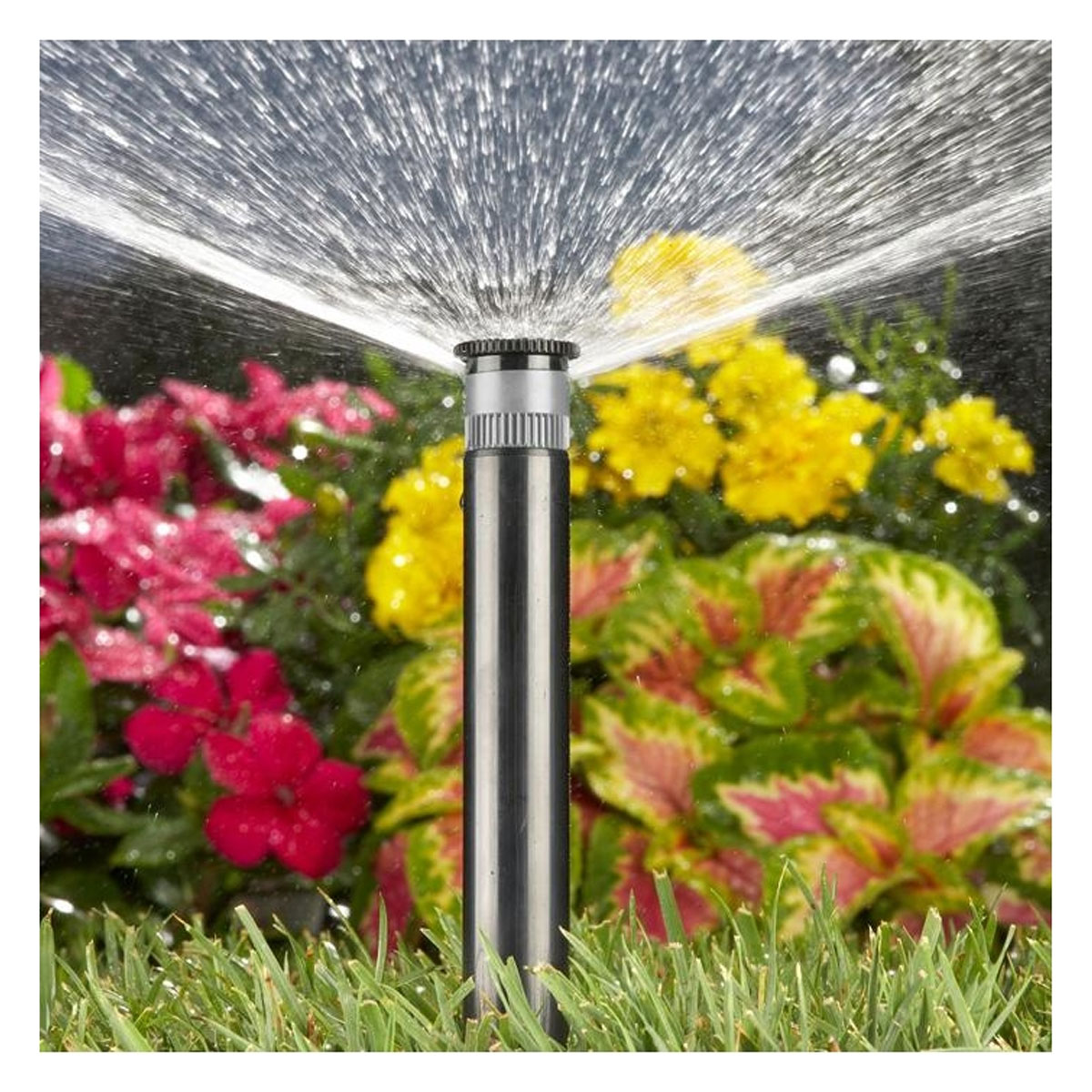 Studiati per distribuire l’acqua in modo uniforme, con i boccagli già inseriti nell’irrigatore. Ogni boccaglio consente la regolazione dell’angolo e della portata, per adattarsi precisamente alla configurazione del terreno da irrigare. L’angolo si regola facilmente da 1° a 360° con un’ampia versatilità d’impiego. Dotati di filtro di grandi dimensioni che trattiene le più piccole impurità. Il filtro è facilmente smontabile per essere pulito. Caratteristiche: 1) Altezza Complessiva: 18,4 cm. 2) Altezza Pistone: 10 cm. 3) Diametro Esposto: 3 cm. 4) Filetto Ingresso: 1/2”. 5) Raggio 10A: Testina regolabile da 3,0 m (10′). 6) In dotazione – ampio filtro di protezione. – vite di regolazione. – frizione sul pistone. – molla di rientro pistone in acciaio inox.