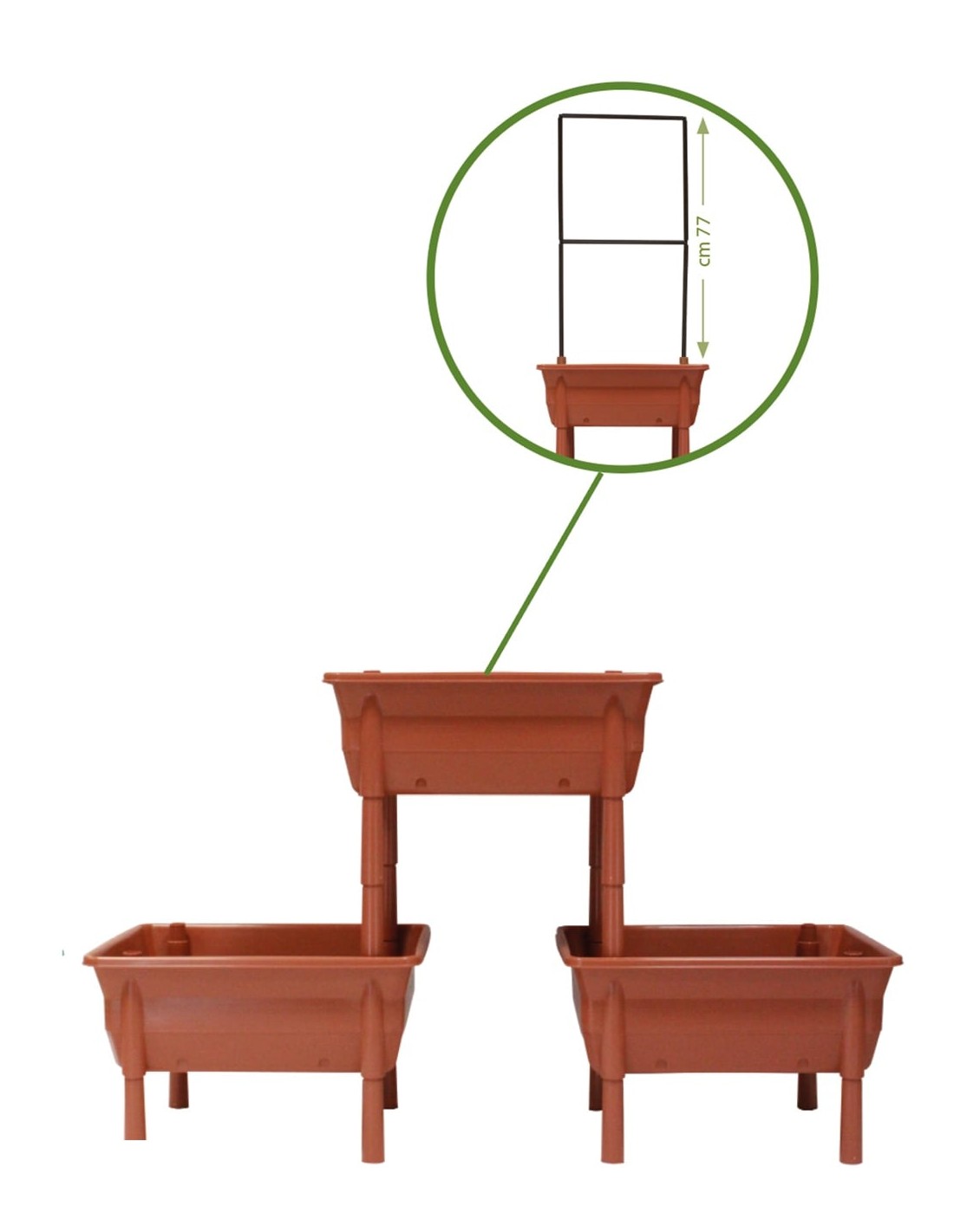 Pratico kit ideale per realizzare un orto in pochissimo spazio. Semplicissimo da montare senza ausilio di attrezzi. Ideale per la coltivazione di frutta e verdura, erbe aromatiche. L’utilizzo è possibile sia indoor che outdoor. IL KIT COMPRENDE nr 3 – VASCA CON FONDO nr 1 – STRUTTURA PER RAMPICANTI Orto&Orto è il nuovissimo sistema modulare per la realizzazione di orti urbani. Componibile, impilabile e leggero regolabile in altezza Dimensioni delle vasche:52,7 x 45,4 x 19h cm dimensioni delle gambe: 3,5x 16h cm.