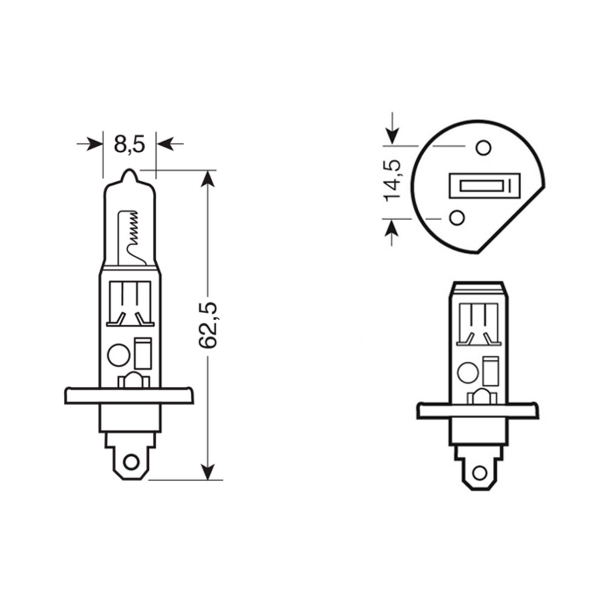 Lampadina alogena H1 12V55W P14,5s. Caratteristiche: – Tipo luce: Alogeno. – Tensione nominale: 12 V. – Modello: H1. – Lumen: 1550. – Potenza nominale: <55 W. - Attacco out: P14,5s. - Certificazioni: ECE.