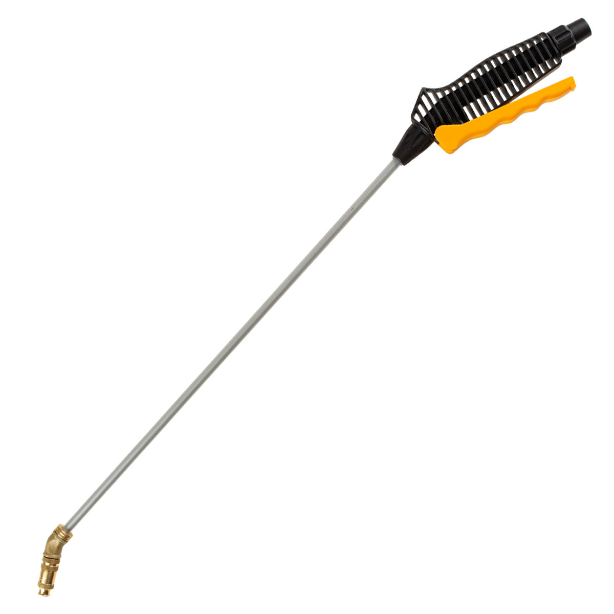 Lancia a leva in alluminio anodizzato con getto regolabile per pompa a irrorazione. Dimensione: circa 65 cm. Grazie al pratico sistema di regolazione, è possibile modificare l’intensità del getto d’acqua in base alle proprie esigenze, garantendo un’irrigazione efficiente e precisa. Realizzata in alluminio, questo materiale garantisce una lunga durata e resistenza all’usura, anche con un utilizzo prolungato. La lancia a leva è dotata di connessioni da 1/2”, con estremità estese saldate, compatibili con la maggior parte delle pompe per l’irrigazione presenti sul mercato