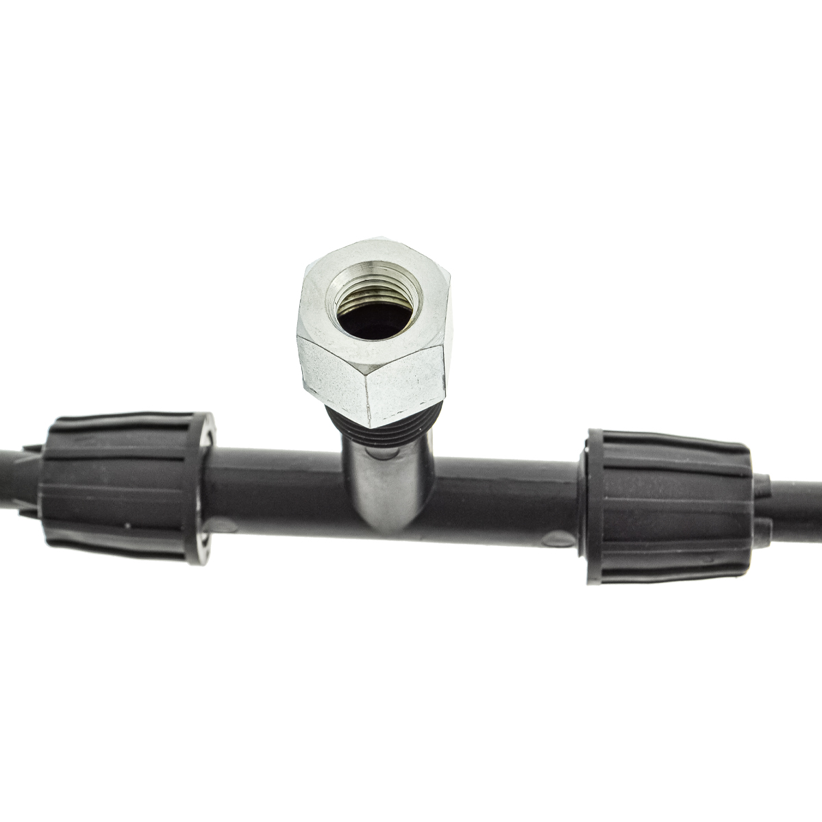 Lancia diserbo da circa 50 cm e 2 ugelli, estremamente leggera permette un raggio d’azione sensibilmente più grande rispetto alla classica lancia. Questa barra irroratrice è dotata di un attacco filettato posto al centro, che permette di collegare la lancia della pompa a zaino mediante un manicotto filettato in dotazione (cod. 3005016). Compatibile con le lance delle pompe irroratrici 3000020 e 3000040. Lunghezza totale: 52 cm. Ugelli: 2 con ugello a ventaglio.