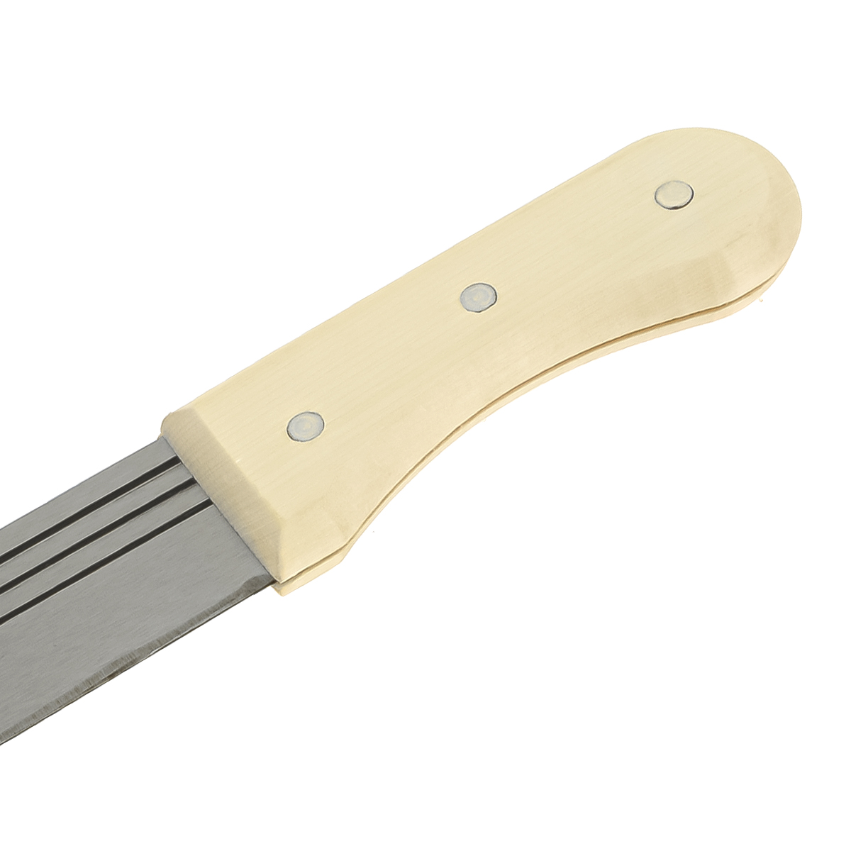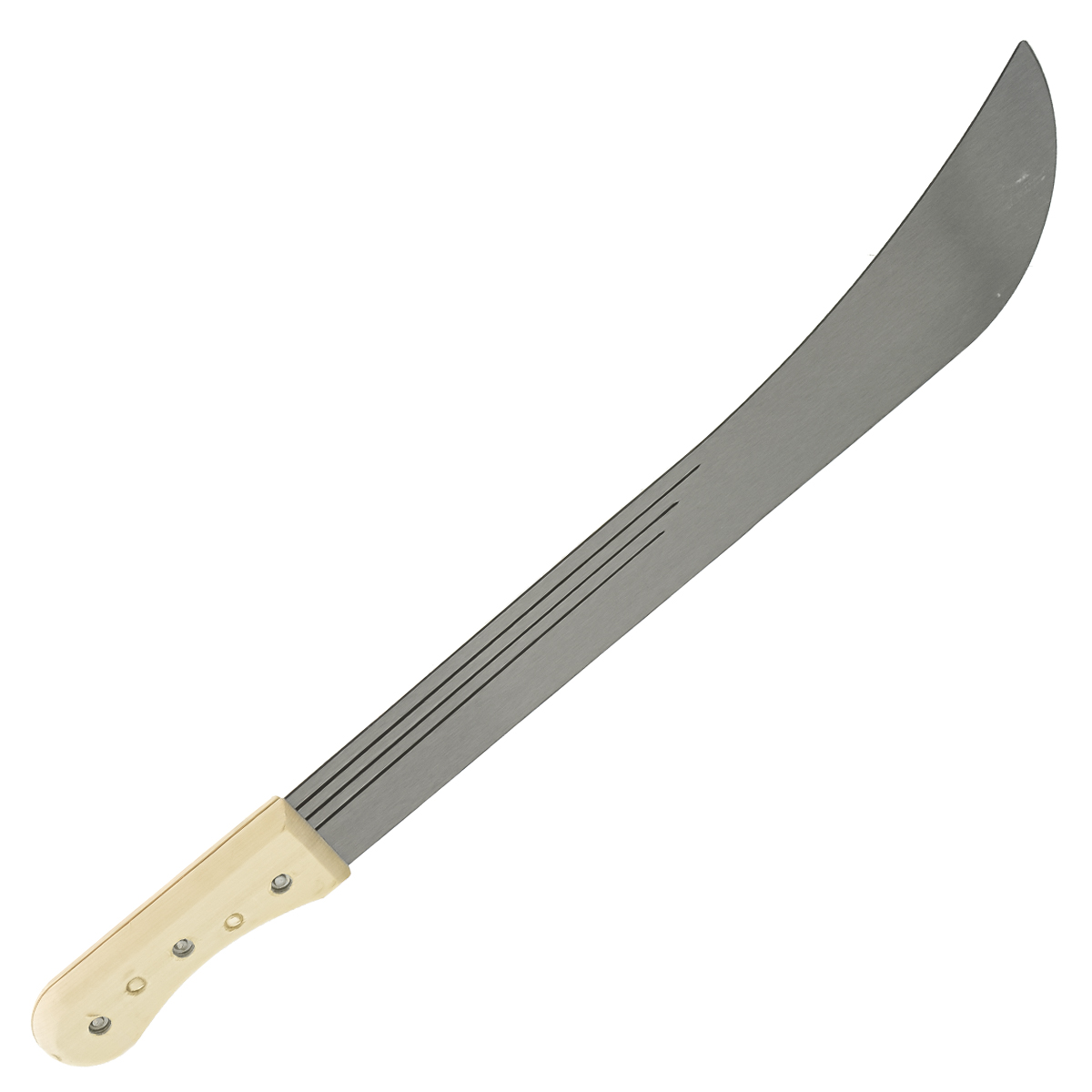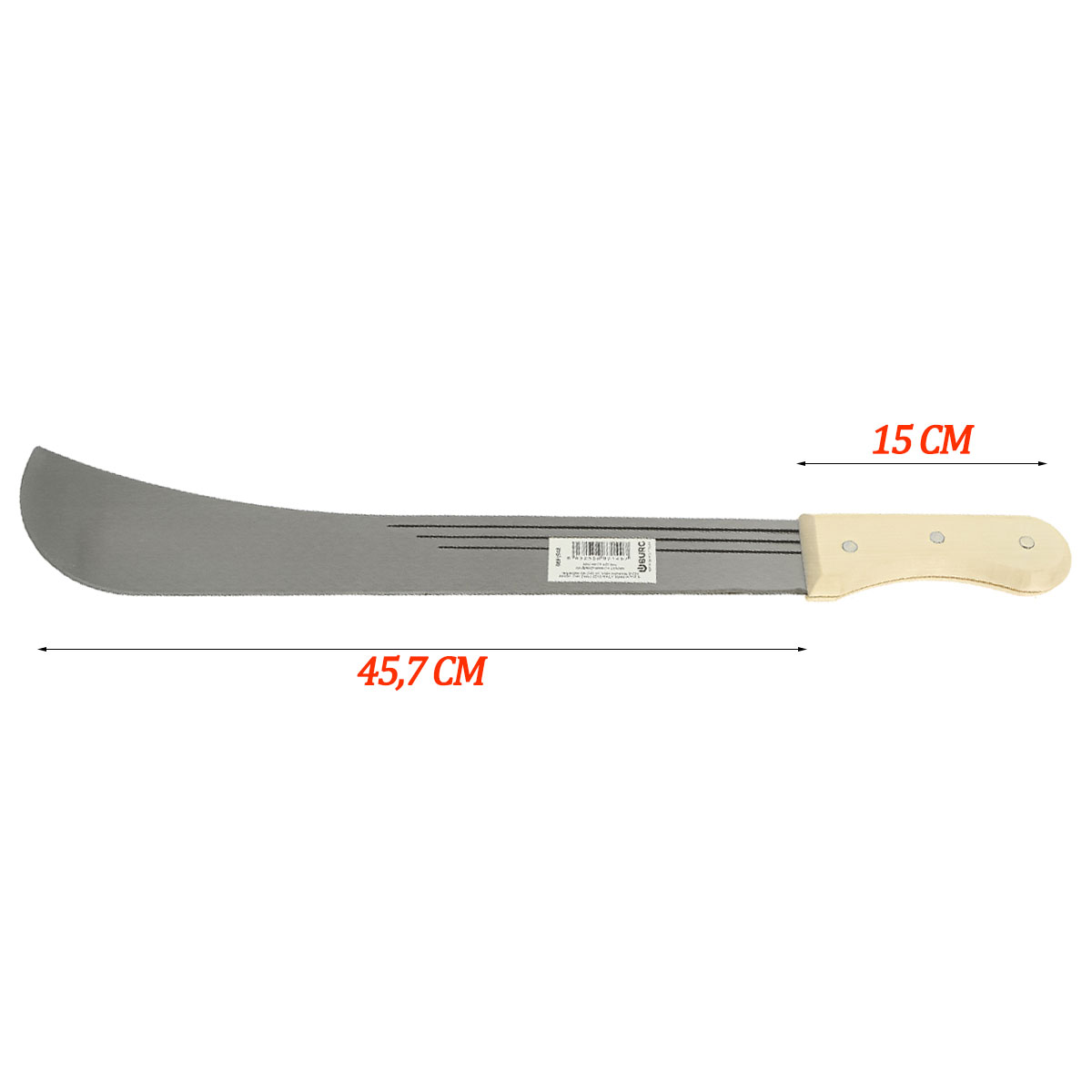 Machete INVERSO con manico in legno. Lunghezza totale: circa 61 cm. Lunghezza della lama circa: 45,7 cm. Lunghezza manico in legno: circa 15 cm. Larghezza della lama: circa 6-7 cm. Spessore lama: circa 1,8 mm.