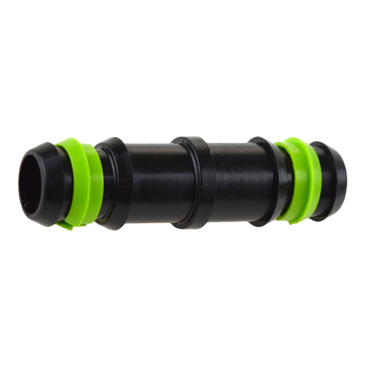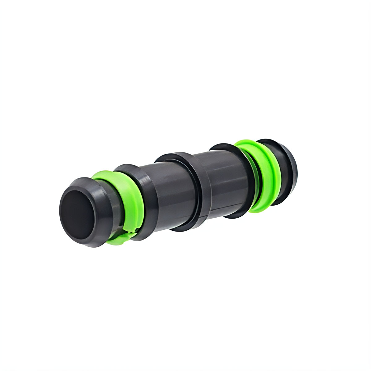 Manicotto giunzione con anello di sicurezza diametro 20 mm. Raccordo per un collegamento ultraresistente tra linee gocciolanti e tubi in PE fino a 4 bar. Basta far scorrere il tubo sul raccordo e il gioco è fatto. Il tubo non può essere staccato dal raccordo in seguito. È impermeabile, facile da installare e offre una tenuta extra forte. Il raccordo è resistente all’usura e durevole. Caratteristiche: – Colore: Nero con anello verde. – Materiale: PP (polipropilene). – Collegamento: Nipplo a innesto. – Diametro: 20 mm. – Campo di pressione consigliato: Max. 4 bar.