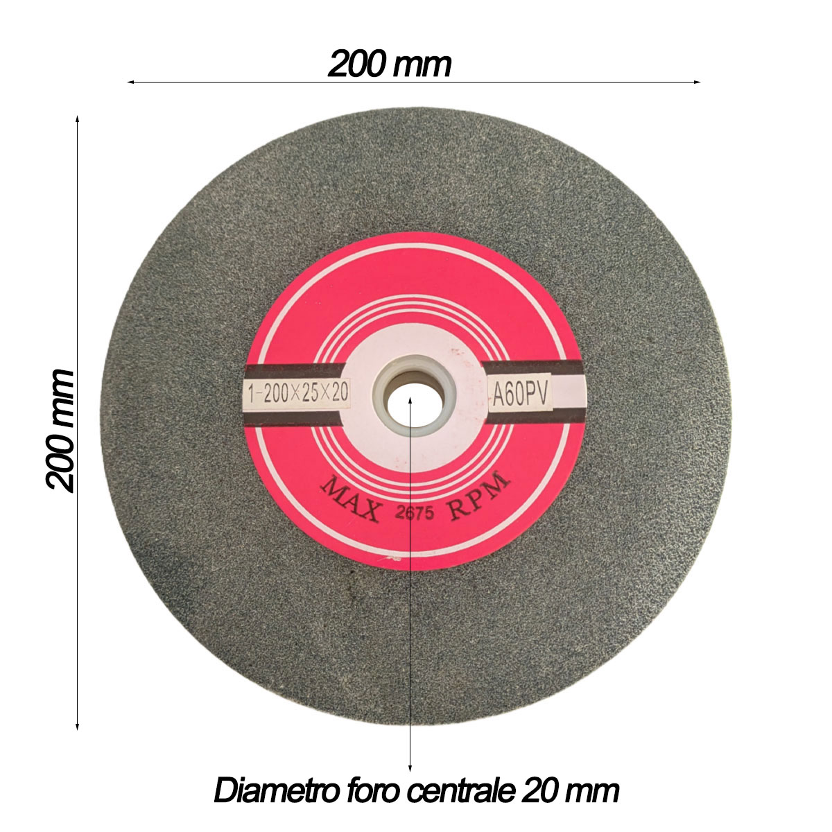 Mola abrasiva di ricambio per affilatrice ad acqua. Caratteristiche tecniche: – Diametro: 200 mm. – Spessore: 25 mm. – Foro centrale: 20 mm. – Grana: 60.