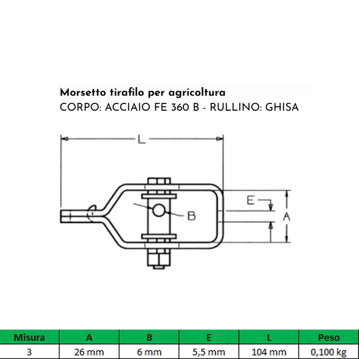 Morsetto tirafilo per agricoltura. CORPO: ACCIAIO FE 360 B – RULLINO: GHISA