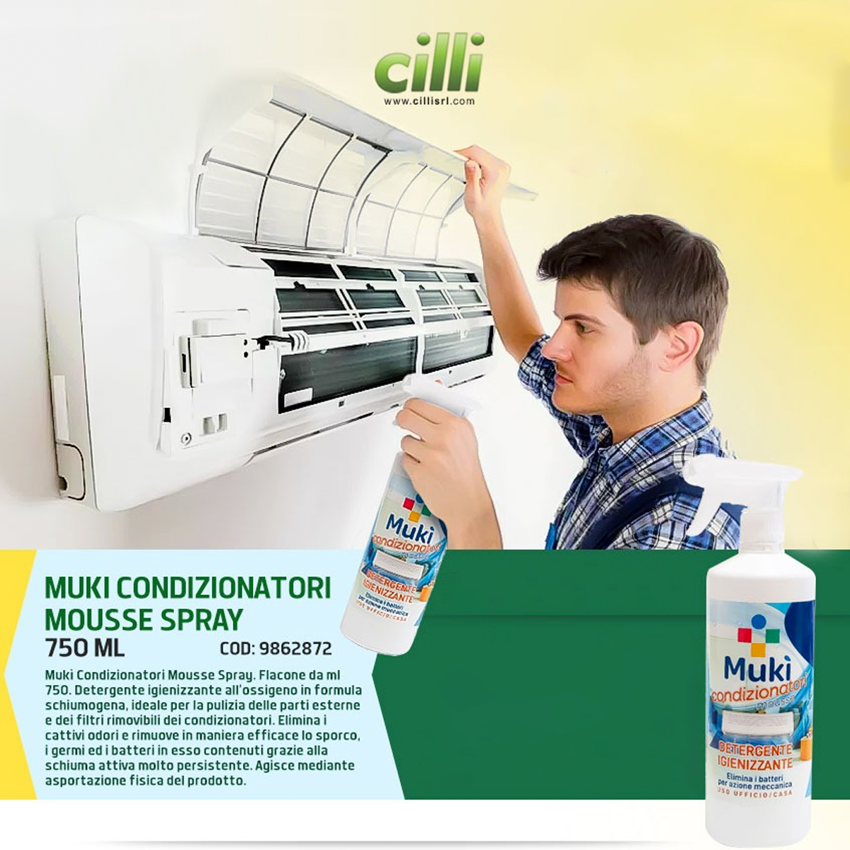 Detergente Igienizzante Schiumogeno per filtri e componenti, allossigeno in formula schiumogena, ideale per la pulizia delle parti esterne e dei filtri rimovibili dei condizionatori. Elimina i cattivi odori e rimuove in maniera efficace lo sporco, i germi ed i batteri in esso contenuti grazie alla schiuma attiva molto persistente. Agisce mediante asportazione fisica del prodotto. In caso di contatto con lepidermide, si possono manifestare fenomeni temporanei di sbiancamento, tale fenomeno è rapidamente reversibile, in tal caso sciacquare la parte con abbondante acqua. MODALITA’ DI IMPIEGO: Spruzzare il prodotto sulla superficie da trattare, lasciare agire per qualche istante quindi passare con un panno in microfibra, carta, o panno o spugna, quindi risciacquare, per la pulizia dei filtri dei condizionatori, dopo averli rimossi, spruzzare la schiuma sui filtri, lasciare agire per qualche minuto, spazzolare energicamente quindi risciacquare sotto acqua corrente, ripetere il trattamento se necessario aumentare il tempo di contatto, asciugare perfettamente il filtro prima di rimontarlo.