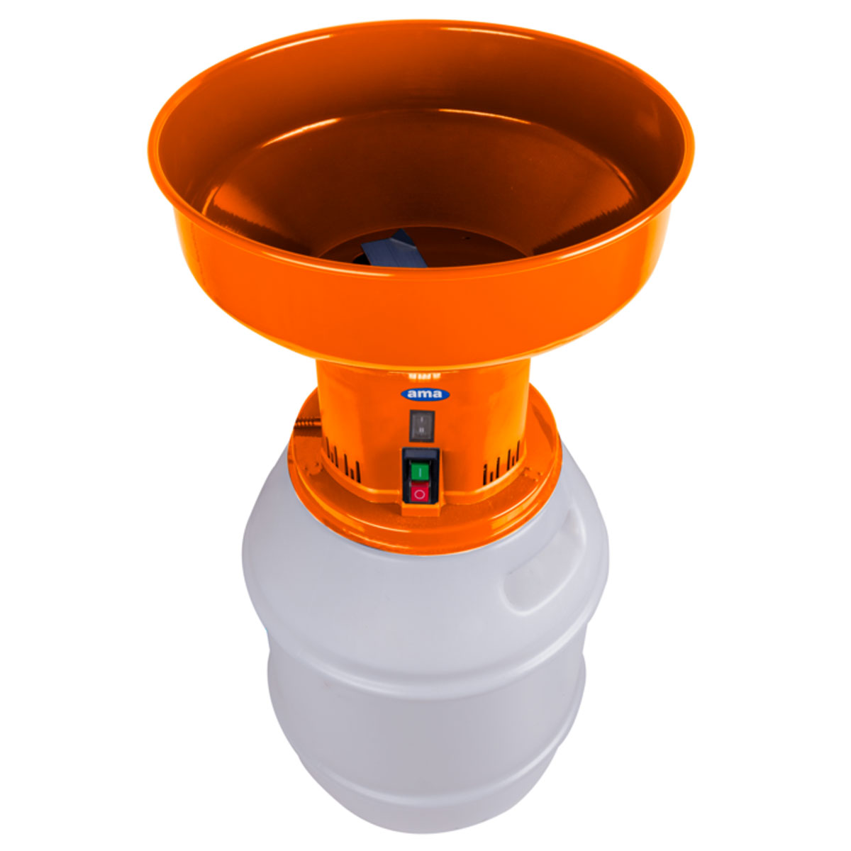 Elettromulino Magico 2,0 hp a 2 velocità dotato di tramoggia da 21 Lt e bidone da 50 Lt. Produzione oraria 30-250 Kg/h. Fornito con 4 setacci facilmente sostituibili. Questo mulino è ideale per macinare ogni tipo di cereale: mais, grano duro e tenero, orzo, avena, riso, segala, fave, ecc.. (non quelli di natura oleosa). Utilizzando uno dei 4 diversi crivelli in dotazione, tutti facilmente sostituibili, si ottengono farine e spezzati di diverse finezze utilizzabili per bovini, polli, suini, conigli, pulcini, ecc… L’ingresso dei cereali nella camera di macinazione è auto-regolato. Il motore speciale con ventilazione forzata e arresto automatico a temperature troppo elevate garantisce sicurezza e una lunga durata dell’elettromulino. Questo prodotto di nuova generazione ha sofisticati dispositivi di sicurezza che impediscono l’accesso alle parti in movimento e pericolose. Massima sicurezza per l’operatore. CARATTERISTICHE: – Capacità tramoggia: 20 l. – Produzione oraria: 35-250 kg/h. – Potenza nominale: 1600 W. – Altezza: 95 cm. – Avviamento: elettrico. – Avviamento elettrico alla rete: si. – Capacità: 50 l. – Certificazioni: CE. – Colore: Arancio, Bianco. – Dimensioni: 420x420x950. – Dispositivi di sicurezza: protezione da surriscaldamento. – Emissioni sonore: 101,7 dB. – Frequenza: 50 Hz. – Giri al minuto max: 22000 rpm. – Griglie in dotazione: 1,5/3/5/7 mm. – Interruttore termico: si. – Larghezza: 42 cm. – Lunghezza: 42 cm. – Lunghezza cavo di alimentazione: 1,3 cm. – Marca motore: AMA. – Materiali: Plastica, Acciaio verniciato. – Modello: EMC70. – Normative: 2014/30/UE, REG. (EC) No. 1935-2004, 2011/65/CE. – Posizione nel disegno: 2. – Potenza meccanica: 2 hp. – Raffreddamento motore: aria. – Silenziato: no. – Sistema risparmio energia: si. – Tensione nominale: 230 V. – Tipo alimentazione: elettrico. – Tipo motore: monofase.
