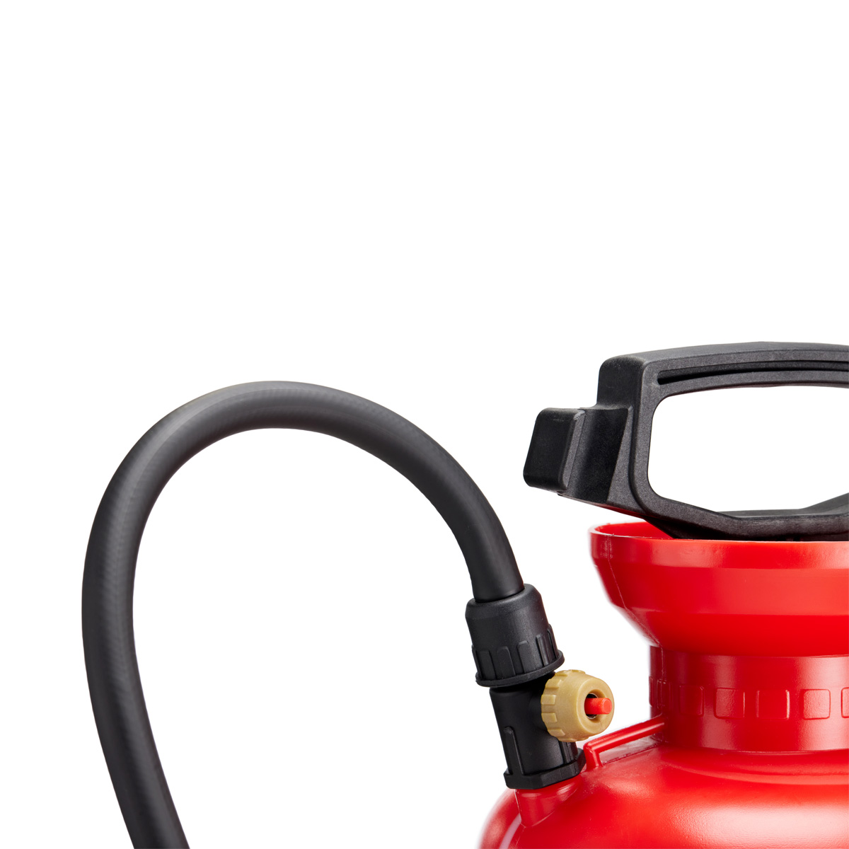 Pompa irroratrice a precompressione con azionamento manuale, per liquidi non aggressivi. Capacità utile rispettivamente di litri 5 e 7. Da utilizzare in giardino per lirrorazione di antiparassitari, anticrittogamici, pesticidi, nel trattamento delle piante. Il serbatoio è realizzato in materiale plastico, polietilene riciclabile con trattamento anti UV contro i raggi ultravioletti del sole. La particolarità del serbatoio è di avere una esclusiva fascia trasparente che permette di controllare il livello del liquido e dosare con precisione i prodotti da miscelare. Pompante in materiale plastico, facilmente smontabile per lavori di pulizia e manutenzione e con cilindro stantuffo di grandi dimensioni per facilitare la messa in pressione del serbatoio. Valvola di sicurezza e scarico manuale della pressione. La pompa può essere trasportata a tracolla con lapposita bretella in dotazione, oppure, a mano, grazie alla maniglia del serbatoio. In dotazione standard con tubo flessibile in PVC e lancia LA2282 ( impugnatura a leva in plastica, prolunga alluminio, ugello regolabile da spruzzo a rosa a getto lungo).