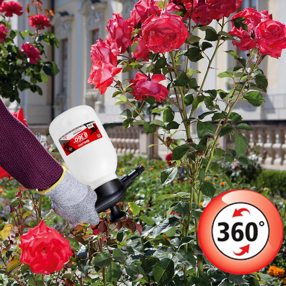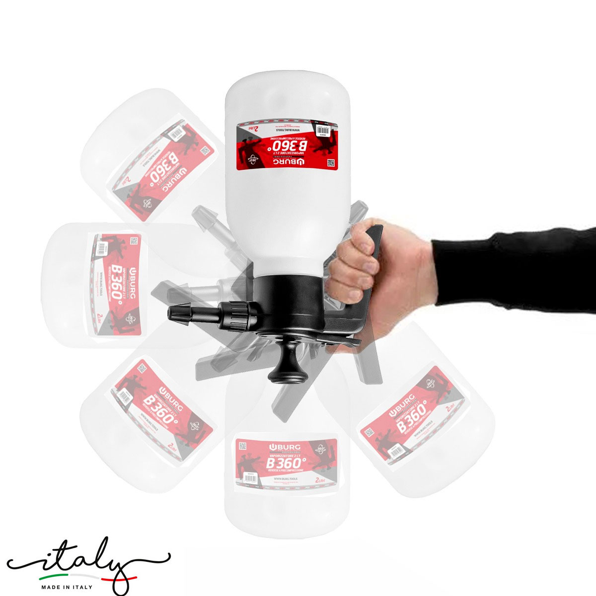 La nuova pompa a pressione BURG 360° REVERSE è perfetta per mantenere sempre ben idratate piante e fiori del giardino. Si contraddistingue per il tubo pescante flessibile dotato di un peso all’estremità che fa in modo che il tubetto peschi sempre il liquido contenuto nella pompa anche se si inclina la testa e la si ruota a 360°, consentendo l’erogazione in qualsiasi posizione. Questa nuova funzionalità permette di irrorare le piante in posizioni particolari, per esempio se si deve bagnare la parte inferiore delle foglie di una pianta. Con BURG 360° è agevole lavorare anche in questa posizione e ottenere risultati ottimali in molteplici situazioni. Questo spruzzatore è ideali per distribuire fertilizzanti, irrigare e prendersi cura delle nostre colture. Adatto alla coltivazione indoor e in giardino. È il modo più comodo ed efficace per applicare: fertilizzanti, pesticidi e fungicidi sulle foglie delle piante. B-360° è la linea di atomizzatori della Cilli, sviluppata appositamente per lavori di giardinaggio e agricoltura. È particolarmente adatto per piccole colture e piante domestiche. È resistente ai prodotti chimici a pH neutro (5-7), a base acqua e non aggressivi come: prodotti fitosanitari ed erbicidi per la lotta ai parassiti. Specifiche: – Peso: 0,455 kg (circa). – Dimensioni: 30 × 23 × 30 centimetri. – Marca: Burg. – Materiale: Polipropilene. – Utilizzo: Coltivazione, irrorazione, irrigazione. – Contenitore: 2 litri. – Guarnizione: NBR Ugello regolabile. – MADE IN ITALY.