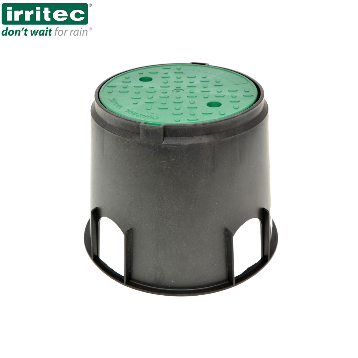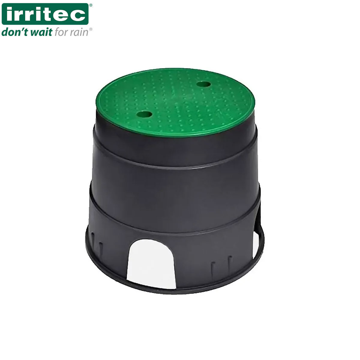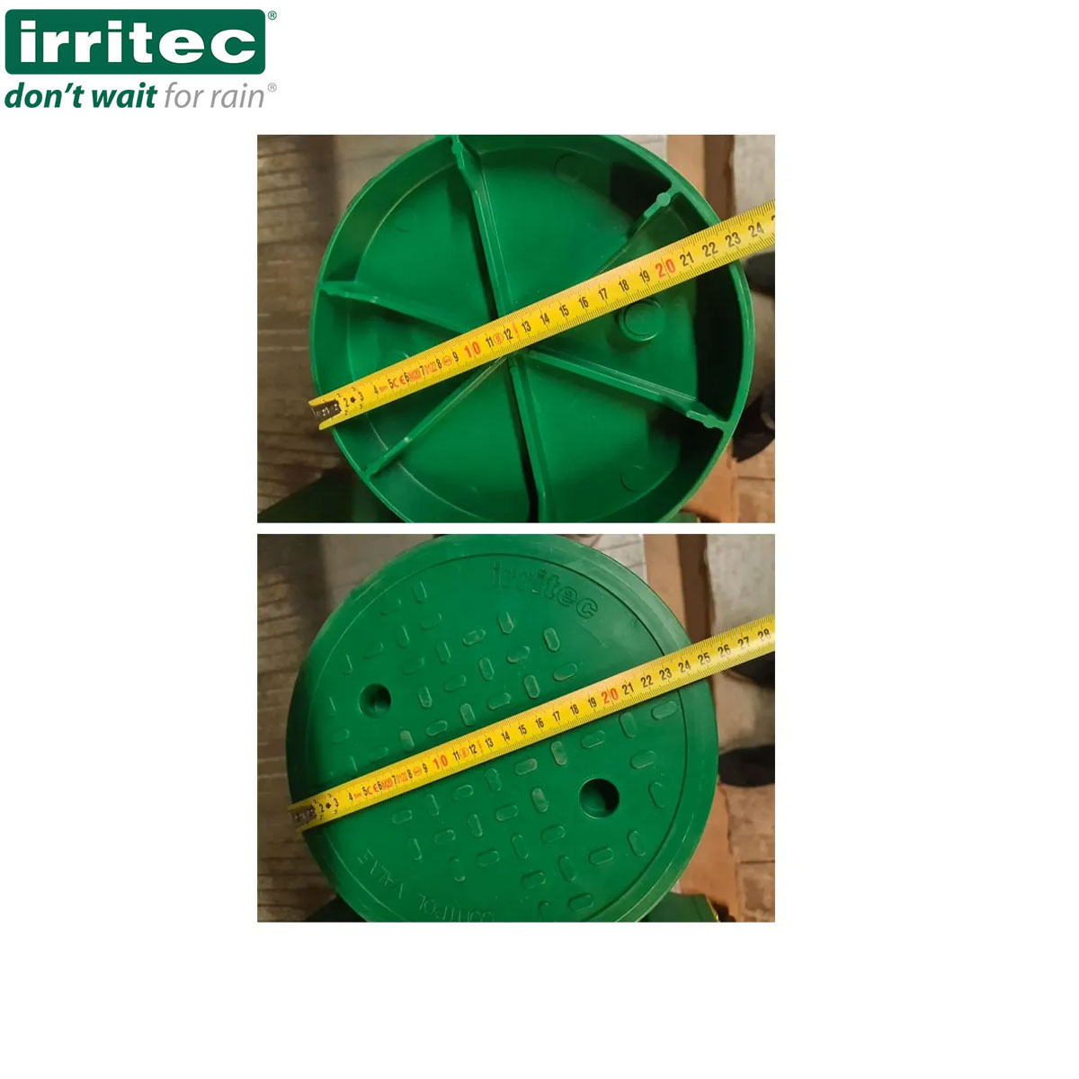 Pozzetto per valvole chiusura con bullone Large circolare dm.25. Creato principalmente per alloggiare elettrovalvole, saracinesche, idrovalvole e qualsiasi altro strumento interrato da ispezionare. Robusti e realizzati con materiali di prima scelta, i pozzetti sono resistenti alle intemperie e all’urto. Il bullone antivandalo e il controdado fungono da maniglia per il sollevamento del coperchio. I pozzetti permettono il passaggio di mezzi per la manutenzione del verde e di conseguenza sono indicati anche in parchi, campi sportivi e verde pubblico. Sono inoltre dotati di coperchio verde per integrarsi meglio nel tappeto erboso. Grazie al bordino ”overlap” si eviterà l’inserimento di eventuali detriti. Specifiche tecniche: – Base nera in polipropilene rinforzato. – Coperchio con bordino overlap in polipropilene rinforzato colore verde. – Bullone antivandalismo INOX AISI 304 per i modelli rettangolari. – Carico massimo applicabile secondo norma UNI EN 124. Dimensioni: – Base inferiore: 320 mm. – Base superiore: 225 mm. – Altezza: 250 mm