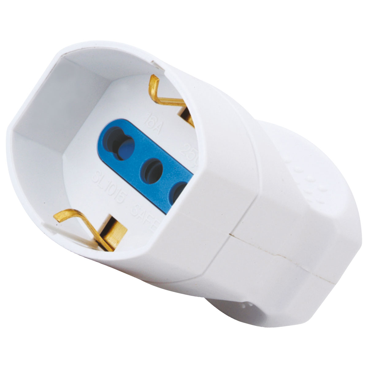 Presa multistandard Schuko + 10/16A 2P+T con uscita dritta. Tensione di alimentazione: 250V. Corrente di uscita: 16A. Corpo in materiale plastico di colore bianco. SPECIFICHE TECNICHE – Tipo: Presa bipasso Schuko + 10/16A 2P+T. – Tensione nominale: 250V. – Corrente di uscita: 16A. – Colore: Bianco. – Dimensioni: 47 x 67 x 42 mm. – Materiale: Plastica.