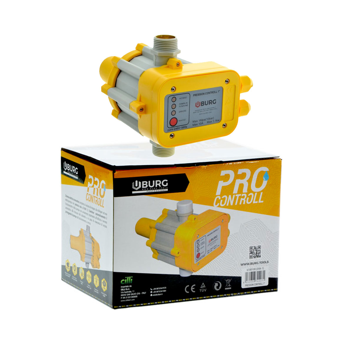Il pression control è un dispositivo di nuova concezione che garantisce un ottimale controllo delle pompe domestiche. Derivato da un progetto idraulico e di logica elettronica, rileva contemporaneamente la pressione ed il flusso e gestisce automaticamente il funzionamento della pompa. Sostituisce il sistema tradizionale del vaso d’espansione proteggendo la pompa in caso di mancanza d’acqua. Molto meno ingombrante dei sistemi tradizionali, è assolutamente affidabile, resistente e di semplice installazione. Avvia ed arresta la pompa in funzione dell’apertura o chiusura degli utilizzi e mantiene la pressione costante durante l’erogazione. Arresta la pompa in caso di mancanza d’acqua, proteggendola dalla marcia a secco e abbatte gli effetti del colpo d’ariete. Non necessita di alcuna manutenzione CARATTERISTICHE: – Pressione max d’esercizio: 10 BAR. – Taratura d’accensione standard: 1,5 BAR. – Temperatura massima del liquido: 55°C. – Tensione di alimentazione: 230 V – 50-60 Hz. – Intensità max di corrente: 10 A. – Grado di protezione: IP 54.