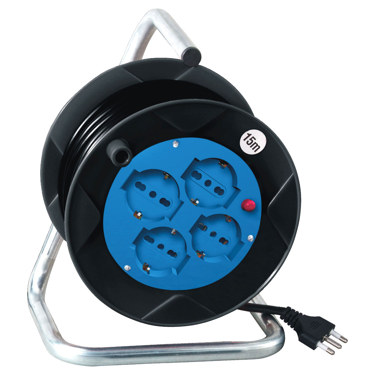 PROLUNGA AVVOLGICAVO DA 15 METRI – 4 PRESE BIPASSO/SHUKO