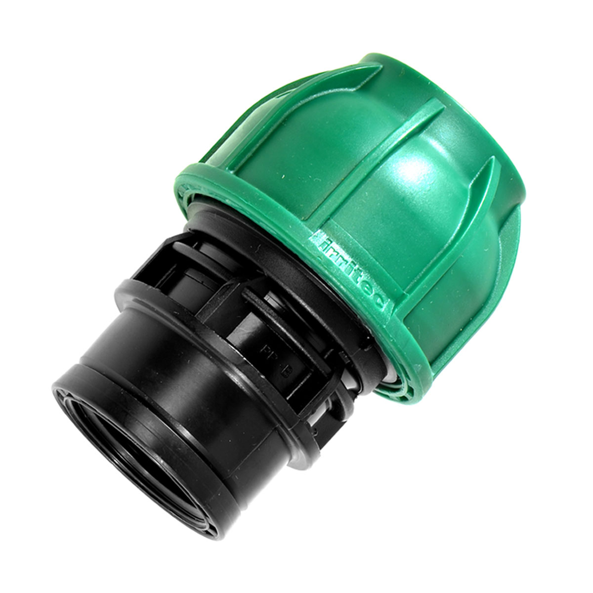 Raccordo a compressione femmina per tubo PE polietilene – Ø 50 x 1”1/2 – PN 10. Il raccordo IRRITEC si distingue per affidabilità, velocità e semplicità di montaggio.