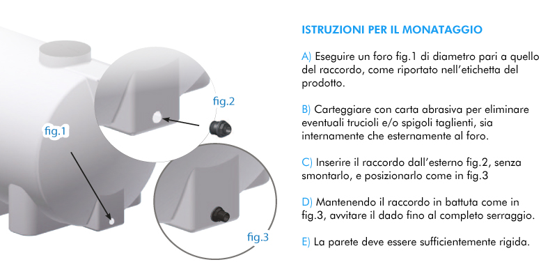 Ergonomia: Eccellenti condizioni dinstallazione diretta dallesterno del serbatoio garantendo la sicurezza sul lavoro previsto dalla direttiva 89/391/CEE, specialmente quando ci sono esalazioni tossiche. Sicurezza di tenuta: il design della guarnizione garantisce la tenuta idraulica a 4 bar, su parete piana o con raggio minimo di 50cm, anche con sollecitazioni applicate pari a 8Nm. Cisterna non compresa