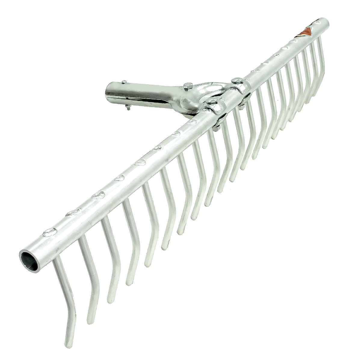Rastrello per fieno e tappeti erbosi in alluminio, 20 denti. Larghezza circa 62 cm. Manico compatibile codice 9686155.