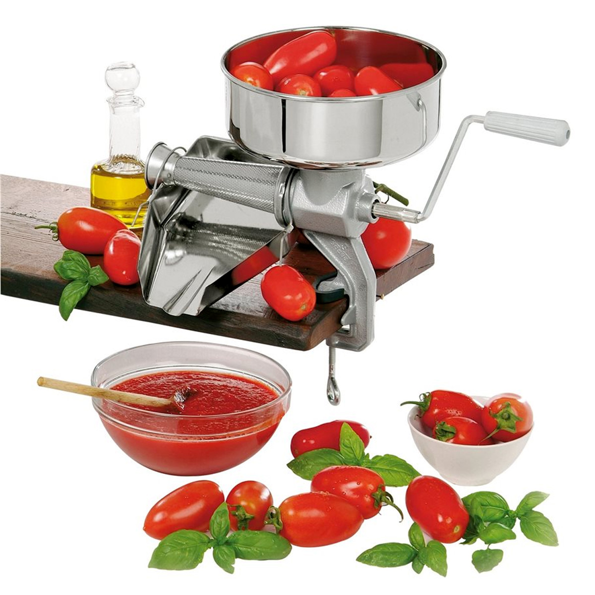 Il passapomodoro Manuale n.3 Inox Reber è una macchina per la trasformazione del pomodoro “in passata” studiata per essere usata in appoggio sopra un tavolo previo fissaggio tramite morsa di cui l macchina è dotata. La macchina è così composta: – Ghiera e mora sono realizzati in alluminio pressofuso brillantato per alimenti. – Filtro in acciaio inox di lunghezza 15 cm. – Imbuto di diametro 19 cm. – Imbuto e scivolo realizzati in ACCIAIO INOX 18/10. – Elica in resina acetilica per alimenti. DATI TECNICI: Dimensioni: 45×28,5×37(h) cm. Peso: 2,5 kg. Imbuto e Sgocciolatoio: INOX.