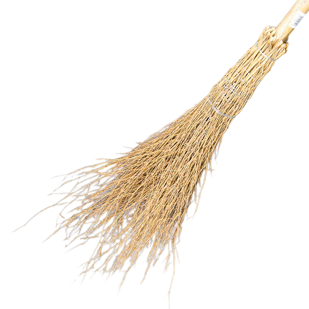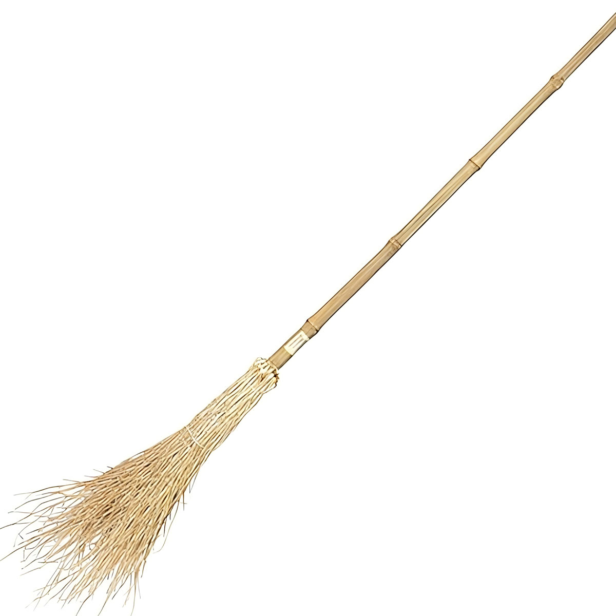 Scopa in fibra vegetale modello BAMBOO con filo passante 15 rami, con manico in legno, circa 230 cm. La scopa è leggera e maneggevole, il che la rende facile da usare. Le setole sono resistenti e in grado di raccogliere polvere e detriti e foglie con facilità..