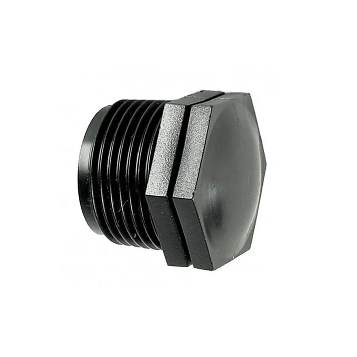 Tappo filettato maschio. È la gamma di raccordi filettati per l’utilizzo in condotte in pressione per impianti d’irrigazione, in agricoltura e giardinaggio. Il corpo è realizzato con materiale in polipropilene di eccezionale proprietà meccaniche che consentono una massima pressione di esercizio pari a 10 Bar.