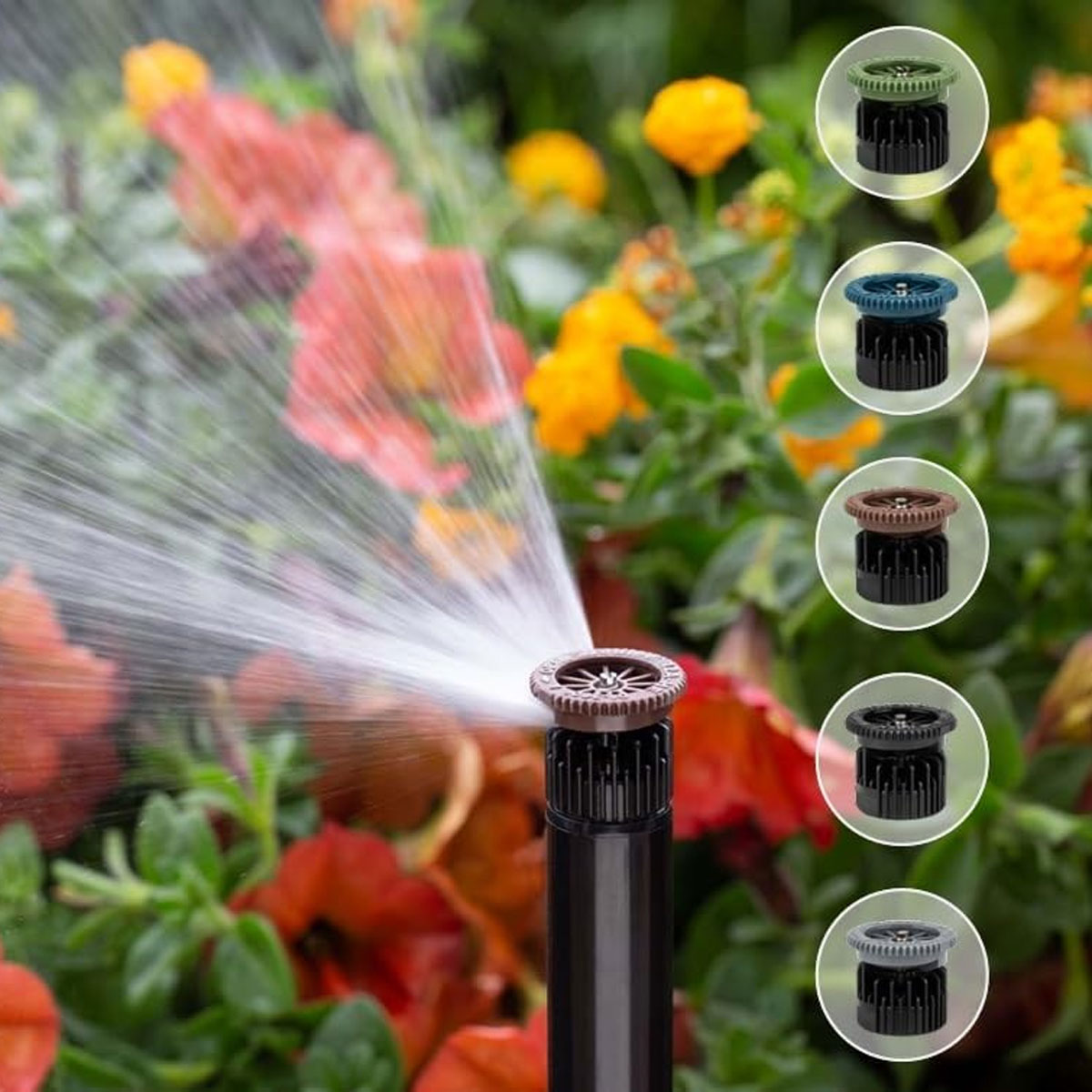 In abs antiurto, bordi frastagliati ben definiti e parte superiore zigrinata per facile regolazione. Pressione di funzionamento consigliata 2,1 bar. Filetto femmina universale. Testina di ricambio per irrigatore cod. 9002916.