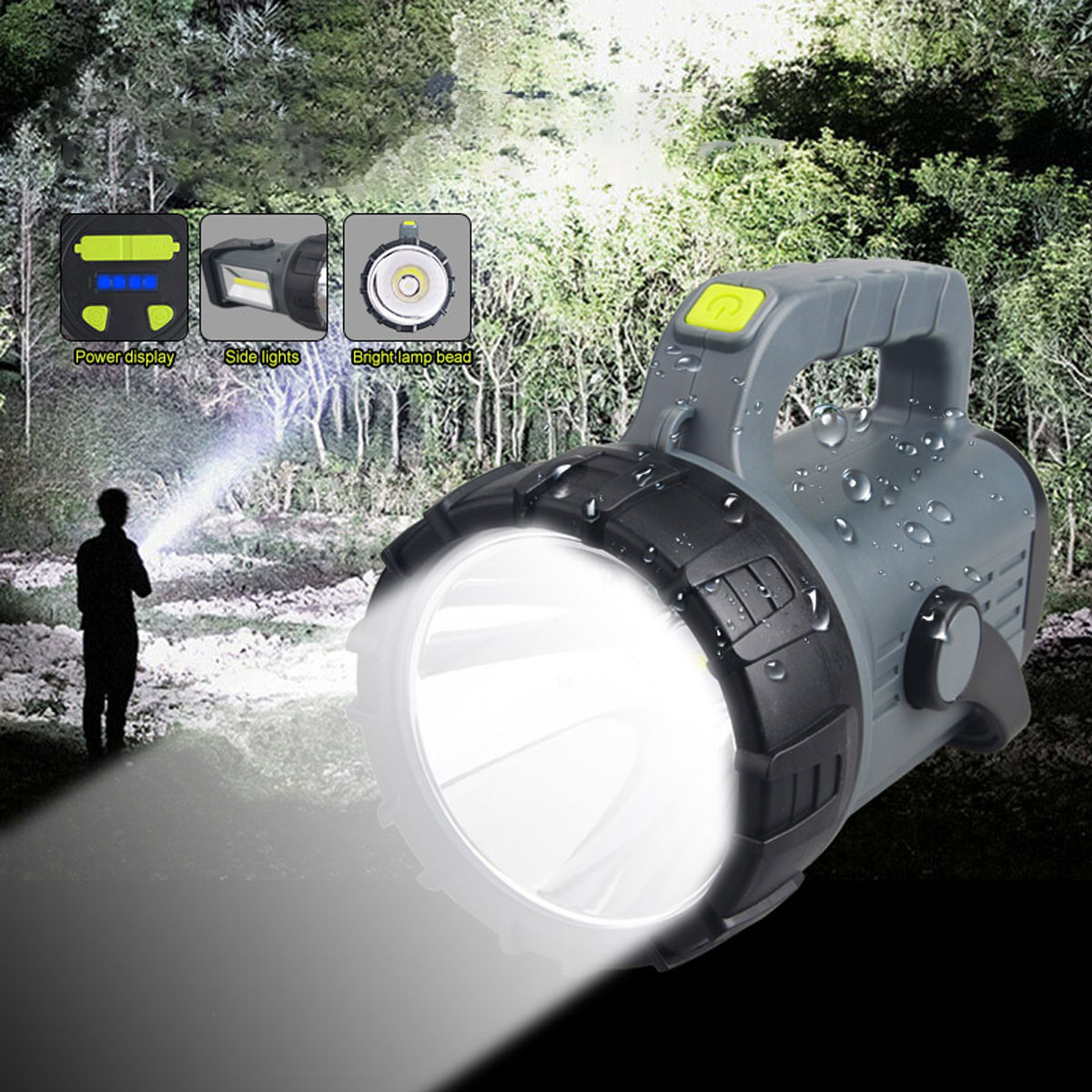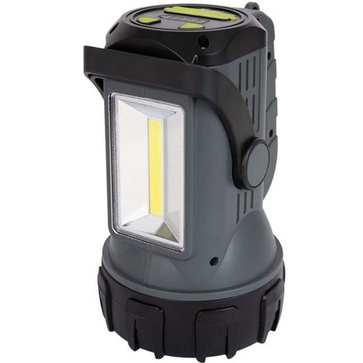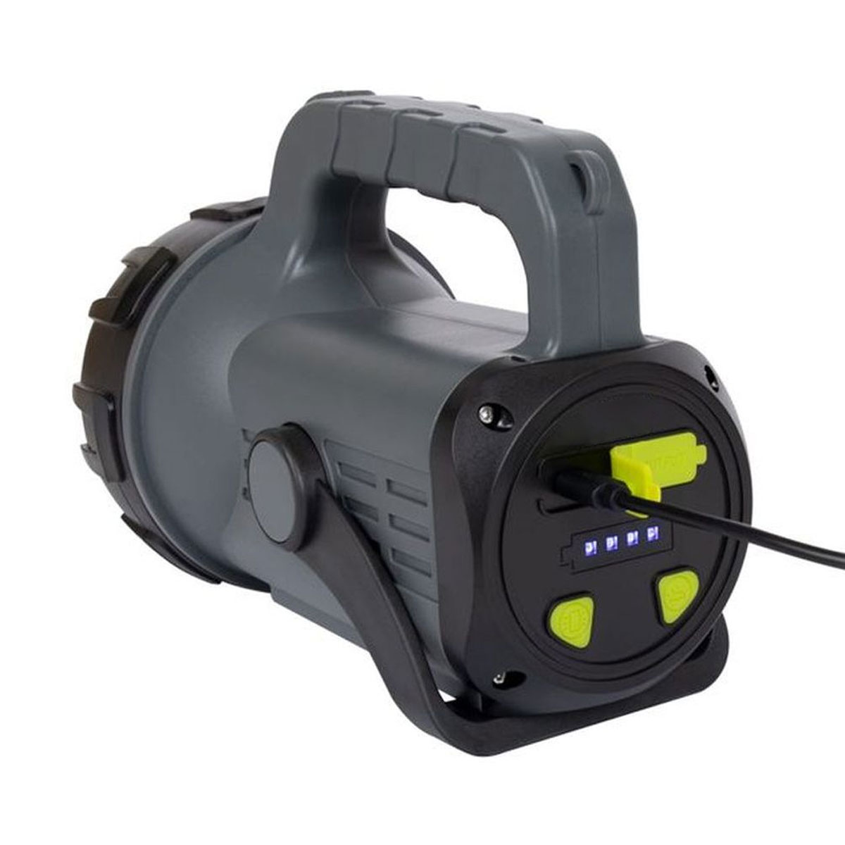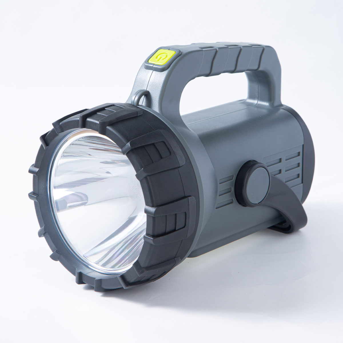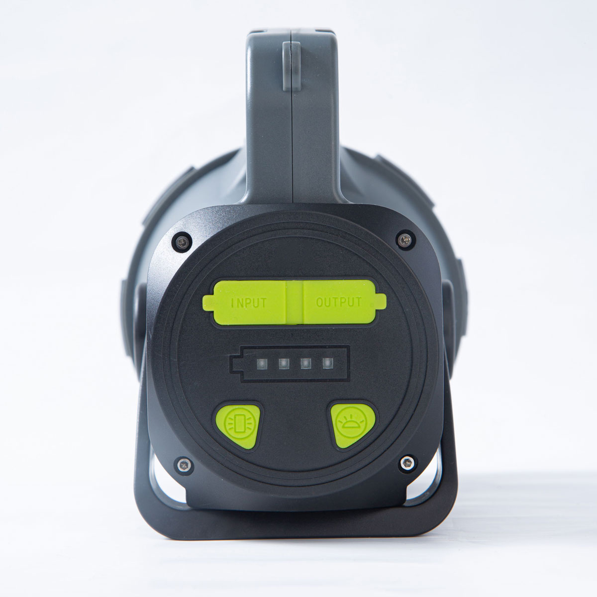 Torcia ricaricabile con parabola e geometria profonda per illuminazione concentrata fino a 300 metri. Luce centrale per illuminazione diffusa. Powerbank da 8000 mAh con USB-a. In dotazione: cavo USB-C e tracolla per il trasporto. Caratteristiche tecniche: 1) Funzioni: Faro: Luminosità 100% – Luminosità 40% – Luminosità 10%. 2) Luce centrale diffusa: Luminosità 100% – Luminosità 50% – Luminosità 20%. Flusso Luminoso: 1) Faro LED: alta intensità 800 lumen, media intensità 320 lumen, bassa intensità 80 lumen. 2) Luce centrale diffusa: alta intensità 300 lumen, media intensità 150 lumen, bassa intensità 60 lumen. Autonomia: 1) Faro LED: alta intensità 4h, media intensità 8h, bassa intensità 16h. 2) Luce diffusa centrale: alta intensità 6h, media intensità 10h, bassa intensità 18h. 3) Luce combinata: altà intensità 3h, media intensità 6h, bassa intensità 10h. Dettagli tecnici: – Tempo di ricarica: 4h. – Input di ricarica: 5V 2A, USB-C. – Alimentazione: Batteria al litio 3,7V, 4x2000mAh. – Profondità: 300 metri. – Illuminazione: Faro: 1 LED COB 15W. – Luce diffusa centrale: 1 LED COB 10W. – 15 chip bianco + 14 chip rosso. – Temperatura Luce: 1) Faro led 6000K (luce fredda). 2) Luce centrale 4000K (luce naturale). – Grado di Protezione: IP55. – Potenza: 15 W faro + 10 W luce diffusa centrale. – Dotazioni: Cavo USB-C lunghezza 50 cm. – Powerbank USB-A. – Manico Ergonomico. – Tracolla per il trasporto. – Dimensioni: 120x150x205mm. – Materiale: ABS + PC. – Peso: 495 grammi. – Colore: grigio e nero.