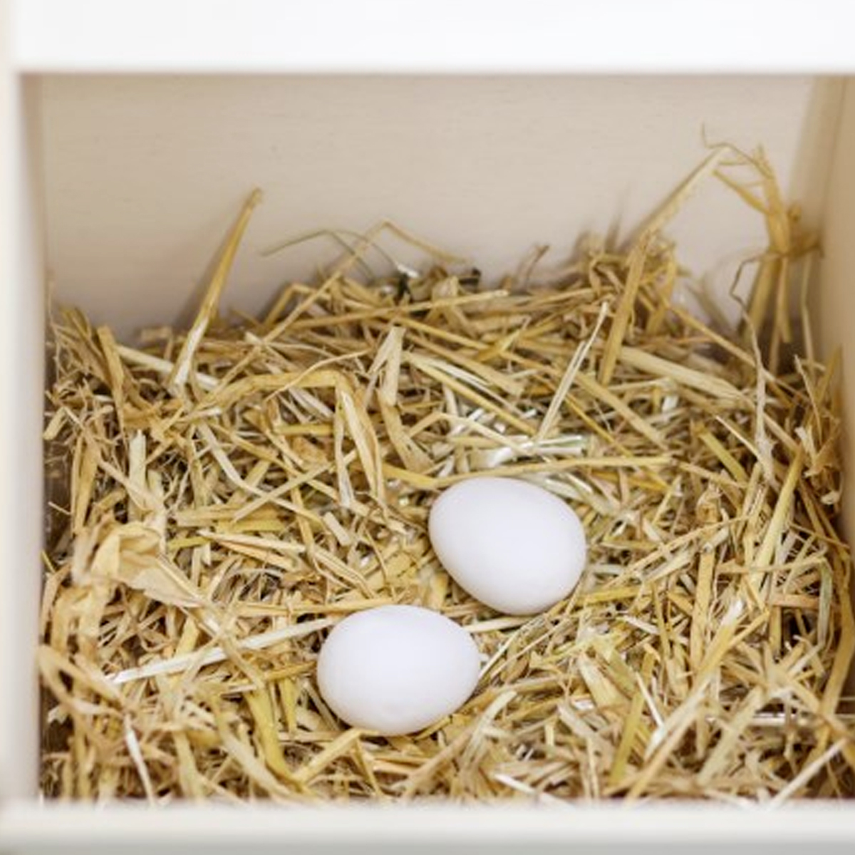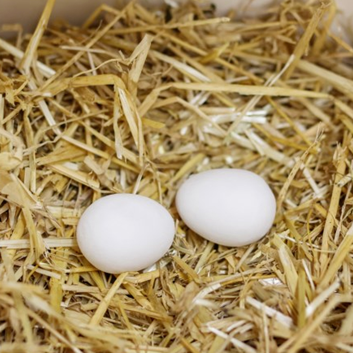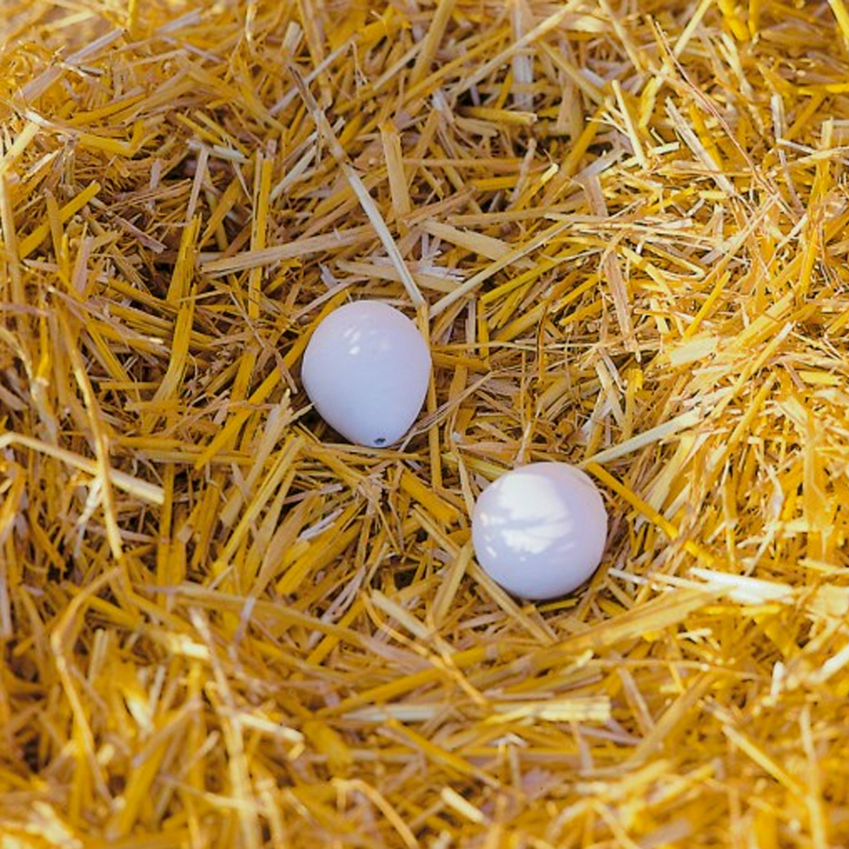 Uova finte di gallina ovaiola in argilla colore bianco. La loro forma, dimensione e peso simulano le uova vere. Molto spesso le galline hanno bisogno di un incoraggiamento per deporre le uova. Con le uova finte in argilla le galline riceveranno il giusto stimolo per fare il proprio dovere. Soprattutto le giovani ovaiole hanno bisogno di ricevere le giuste indicazioni su dove deporre. Un uovo finto stimola la giovane gallina a deporre luovo nello stesso posto. È infatti abitudine comune per le galline deporre le uova nello stesso posto delle altre. L’utilizzo di uova finte per galline stimolerà questo comportamento animale ed eviterà di dover cercare le uova all’interno del pollaio o nell’aia. L’utilizzo di uova finte stimola inoltre nelle galline listinto di cova. Uova finte per galline in sintesi: – In legno. – Per stimolare la deposizione. – Per mostrare alle galline il luogodi posa.