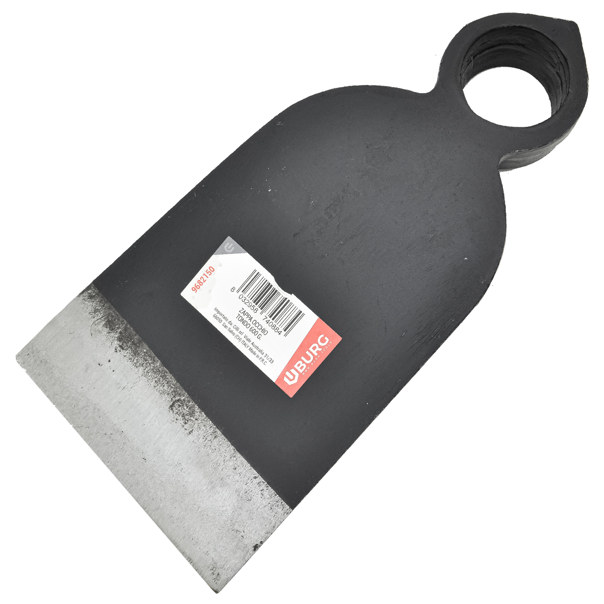 Zappetta per orto giardinaggio e agricoltura a occhio tondo. Progettata per smuovere e livellare la terra, rompendo le zolle e rivoltando lo strato superficiale del suolo. Il peso della testa è di 600 grammi. È realizzata in lega di prima qualità per una lunga durata. Il manico non è incluso e deve essere acquistato separatamente (manico compatibile codice 9686100). Caratteristiche: – Altezza zappa: circa 200 mm. – Larghezza zappa: circa 103 mm. – Diametro superiore occhio: circa 30 mm.